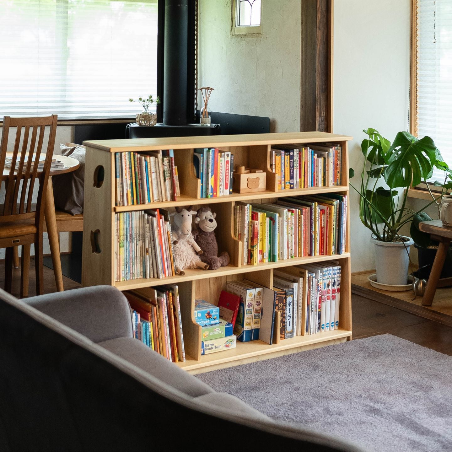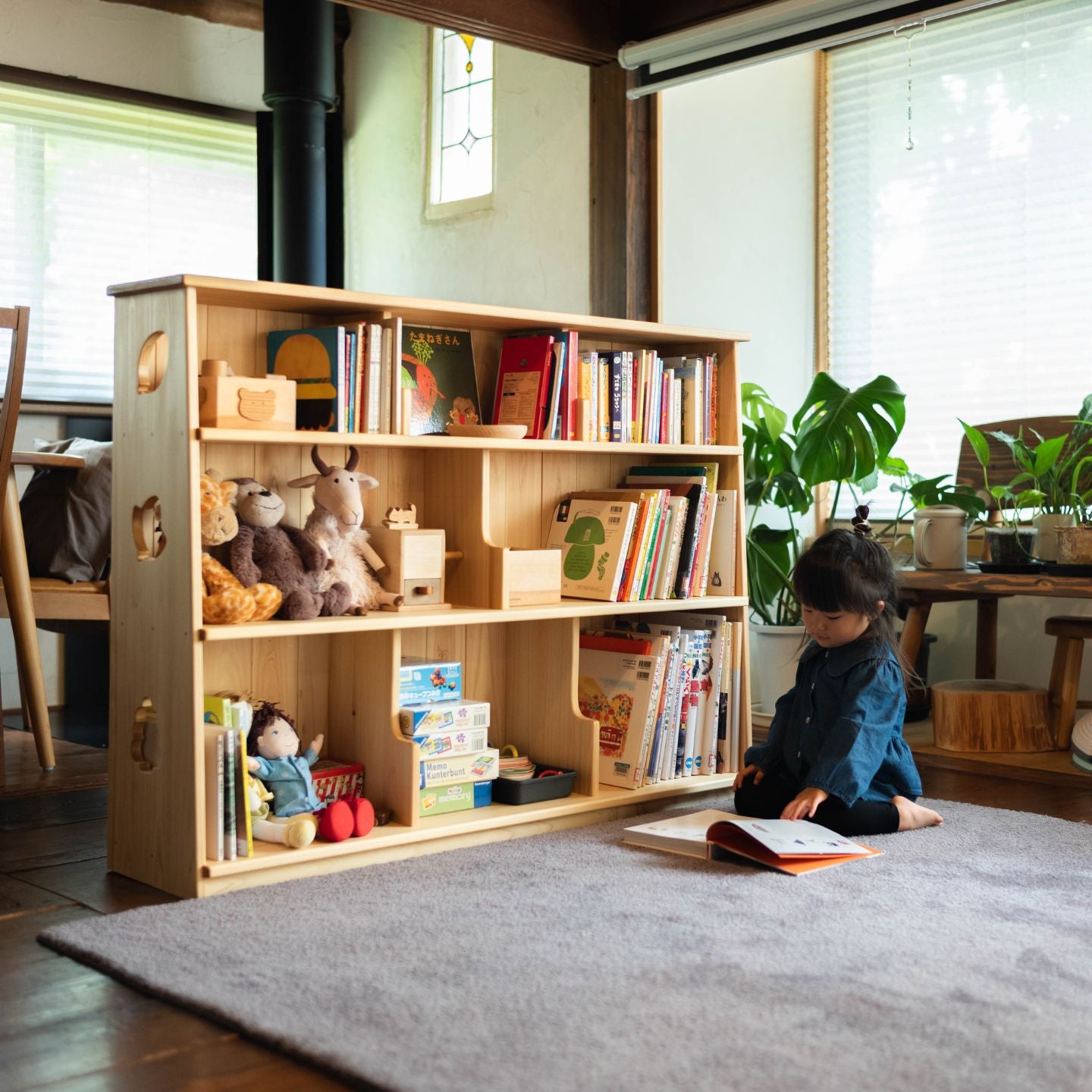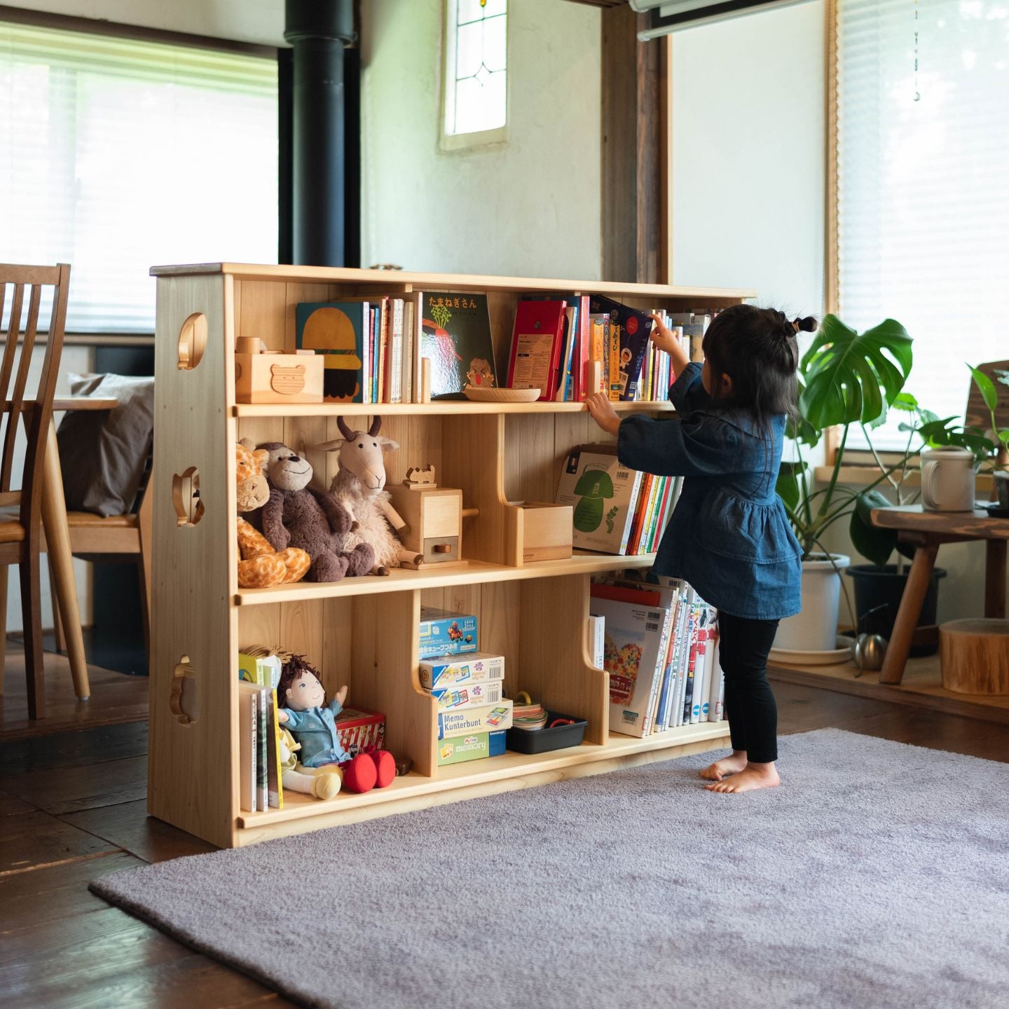 子どもが自分で本を取り出し、しまうことができるから、読書も片づけも自然と習慣になります。
