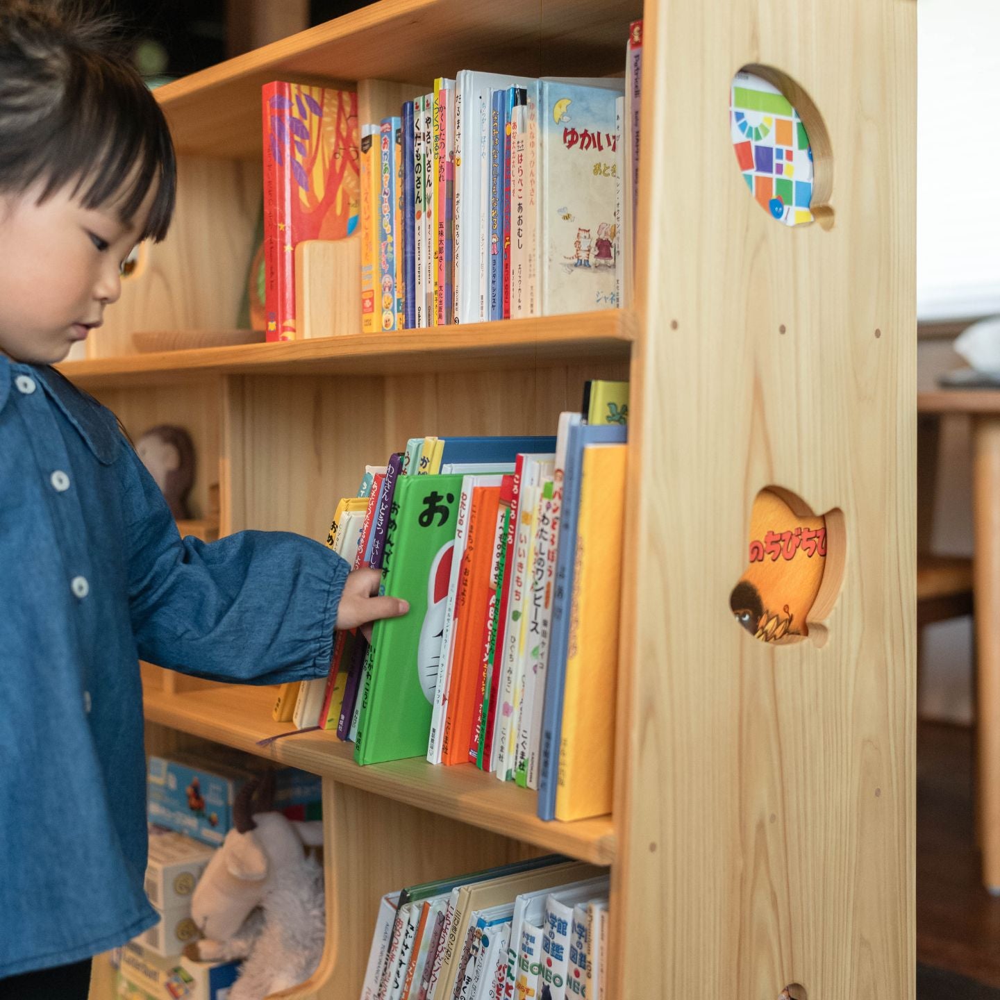 絵本を見つけて、開いて、片づける――そんな一連の動作が、子どもにとって楽しい時間になるように。