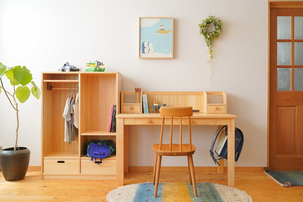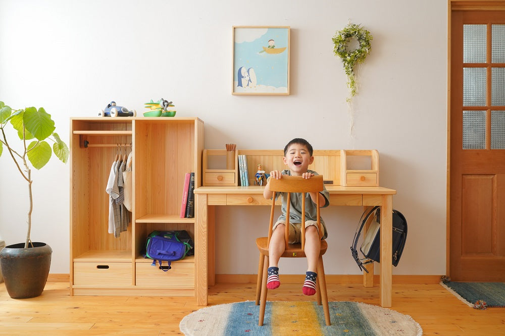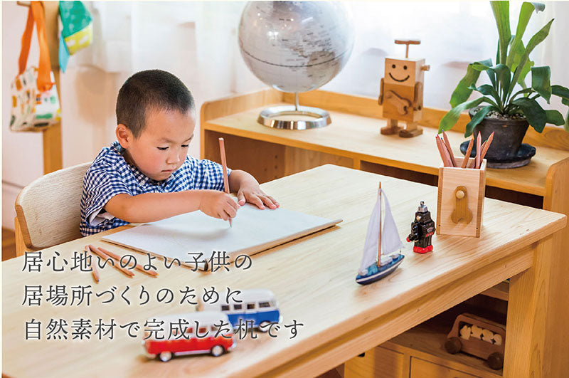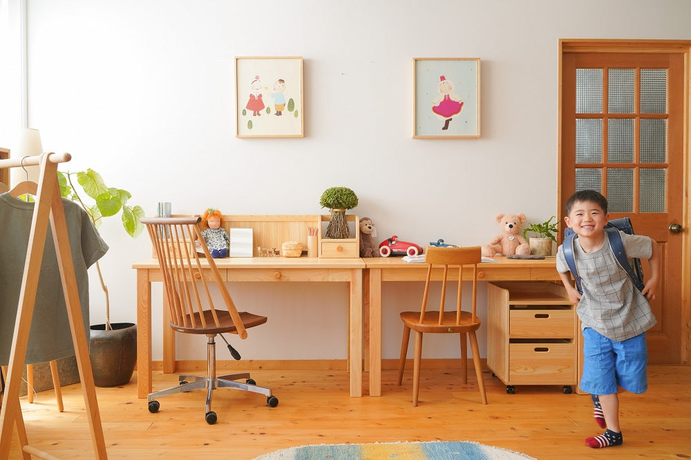良いものを大切に長く使うことは、物を大切にすることにつながると考えています。ただ学習デスクを買い与えるのでなく、小さいころから本物の木に触れられるいい機会を作ってあげられるのではないでしょうか。