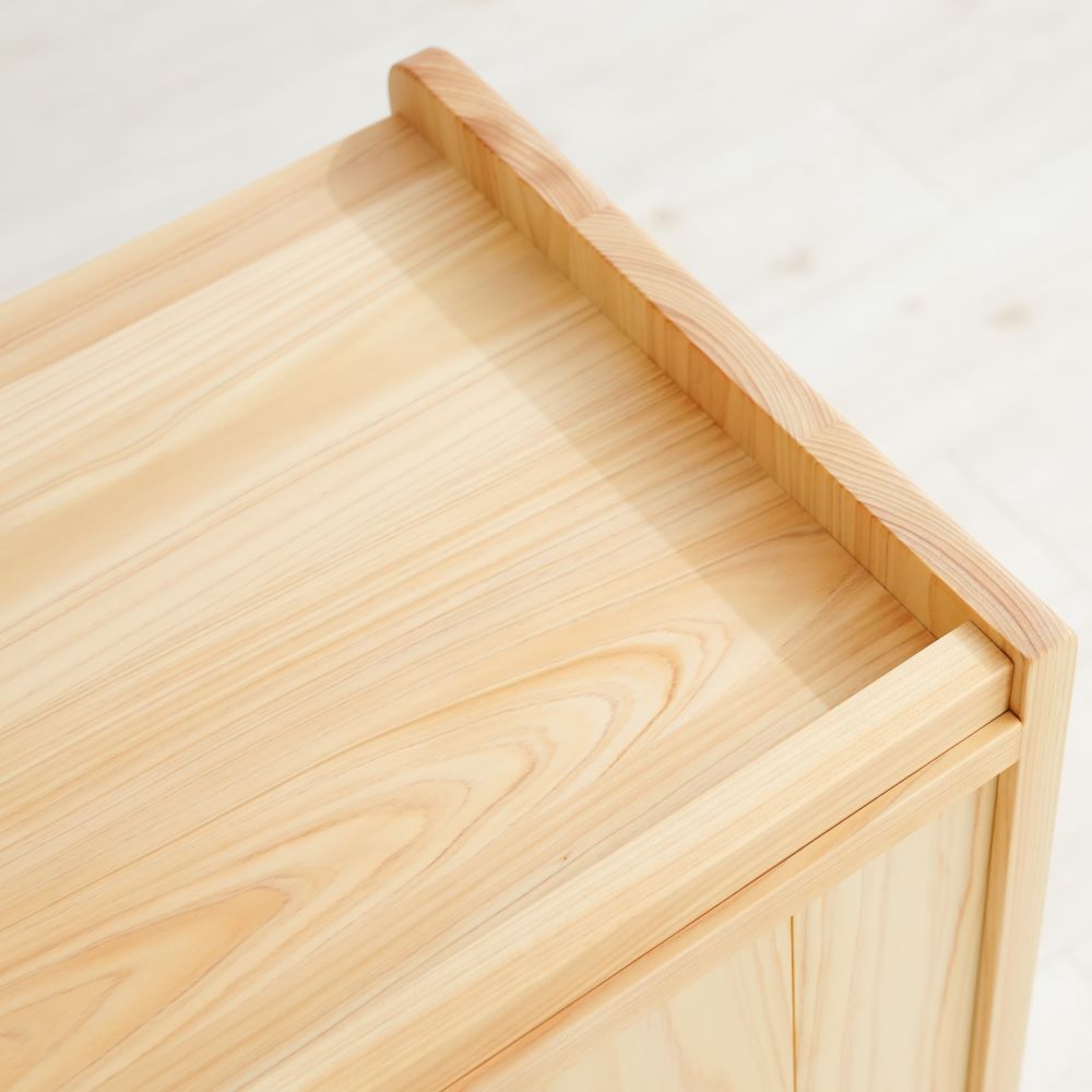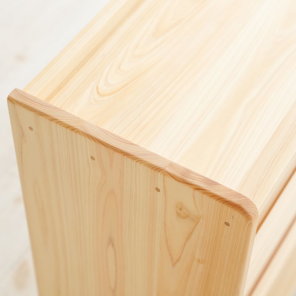 角はすべて丸く仕上げています。職人の手仕事で丁寧に作り上げることで、いつまでも子どもたちに安心して使っていただけます。