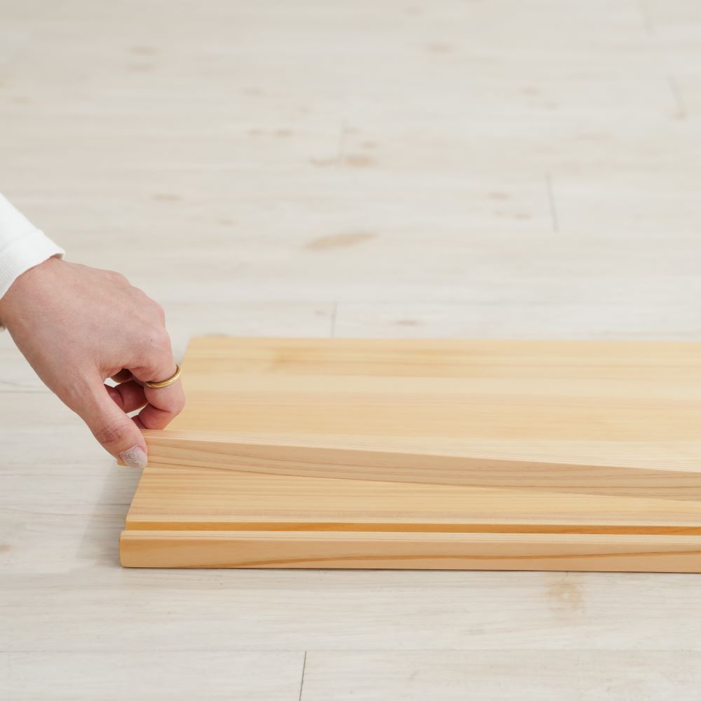 国産のヒノキを使って製作しています。傷や凹みもつきますが、子どもたちの思い出と共にあめ色に風合い良く経年変化していきます。