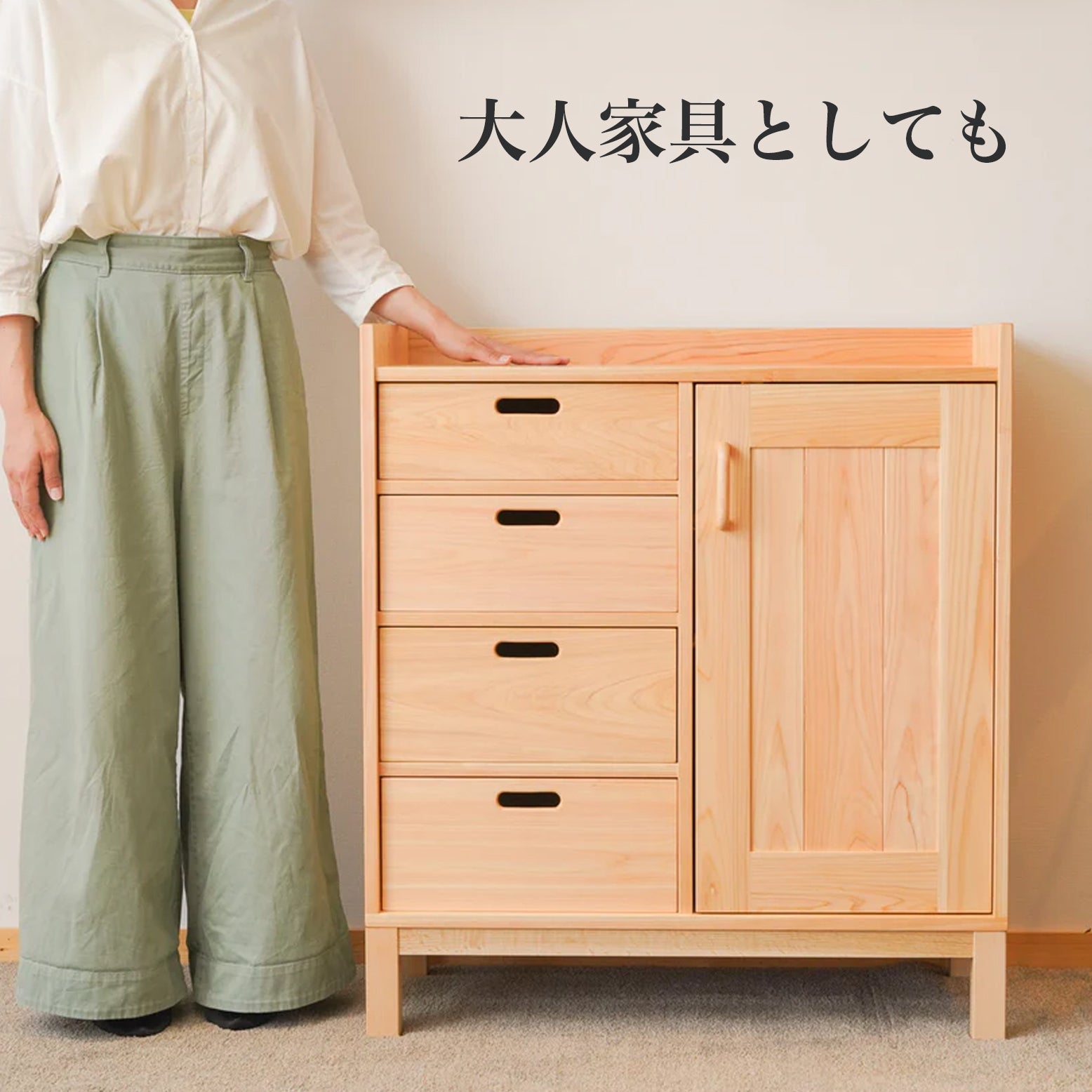 ひのきの扉付き棚~大人も使える便利な棚~