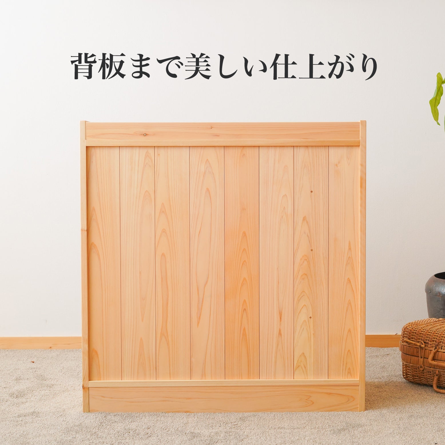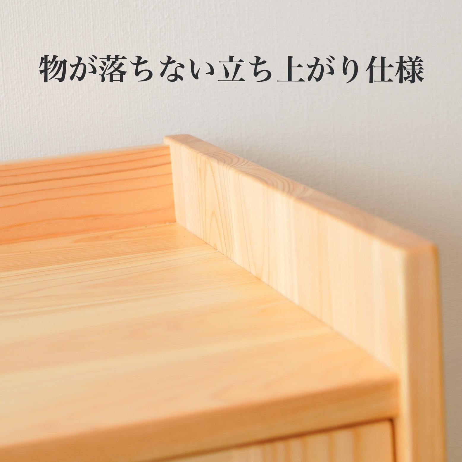 フラットタイプです。ヒノキの集成材柾目のきれいな板を使います。ツルツルの肌触り。ほこりなどが積もることがありません。よりシンプルがお好きな方に。