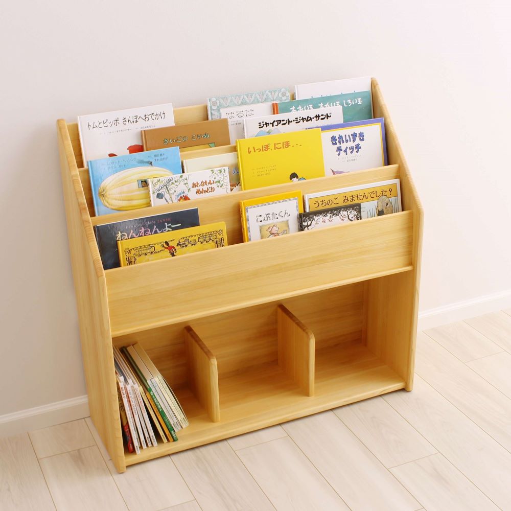表紙が見えるので、お子さまが「これ読みたい!」と手に取りやすく、自分で選ぶ体験が自然に生まれます。毎日の生活のなかで、絵本が身近な存在となり、読書習慣へとつながっていきます。