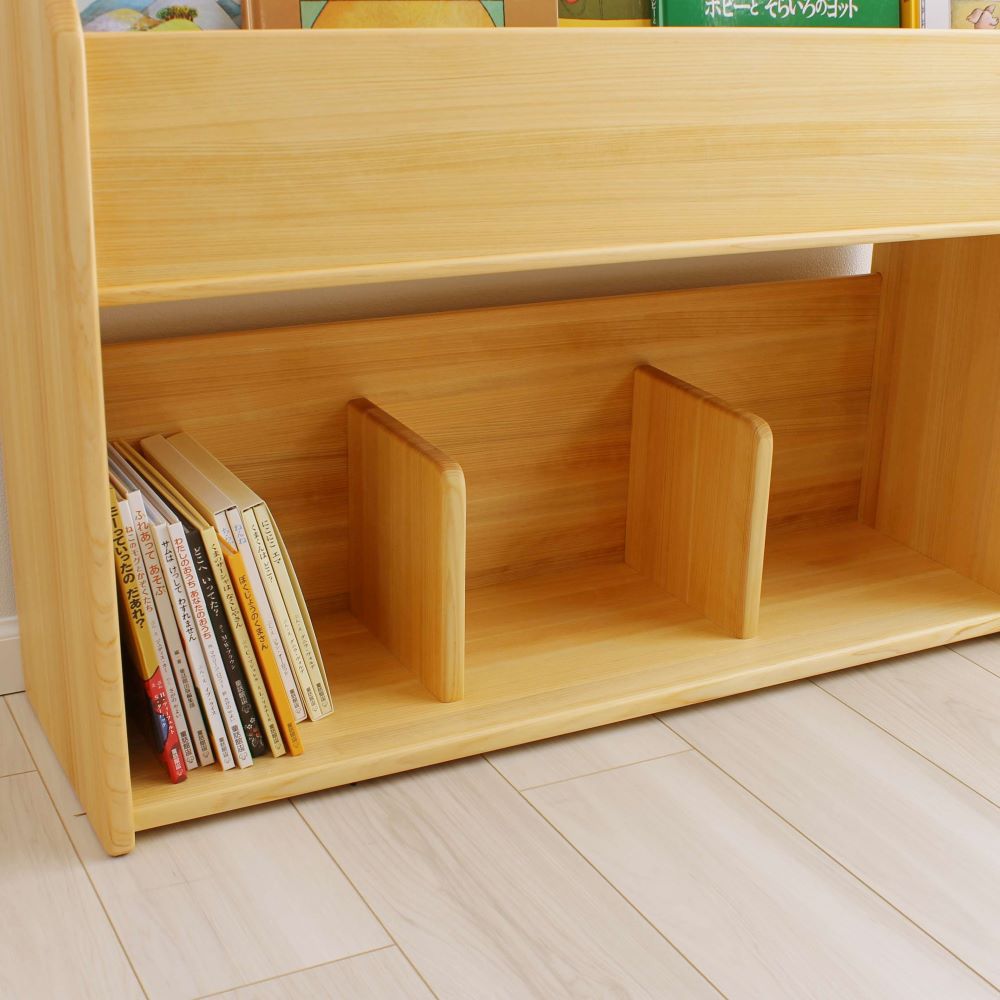 約70冊の絵本を収納できる頼もしいサイズで、お子さまの成長とともに長くお使いいただけます。