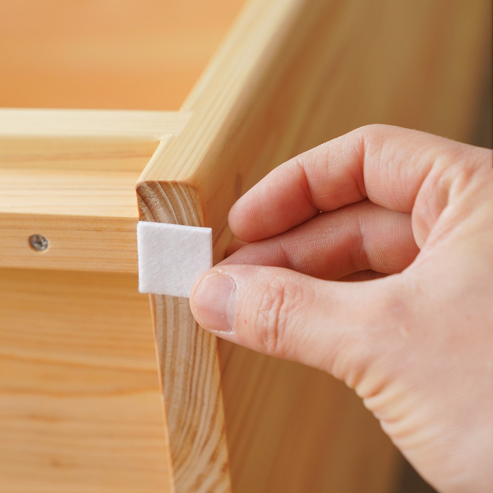 湿気の多い時期には膨らみ、乾燥すると収縮します。木の乾燥は十分に行っているのですが、稀に木のおもちゃの箱に亀裂が入ったり、家具の引出しが少し抜けにくかったりといった動きが見られる場合があります。