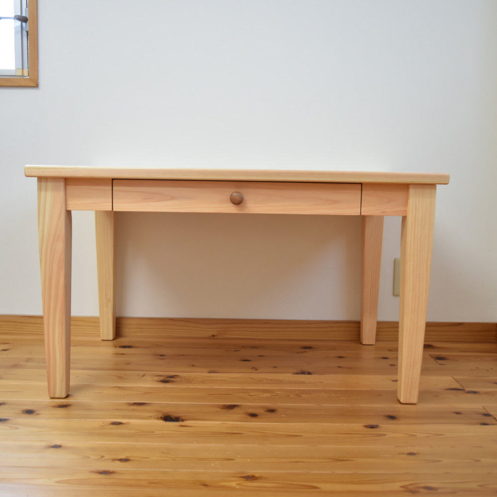 机には、道具やノートなどをさっとしまえる引き出しが1つ付いています。使ったあとは引き出しに戻す——そんな習慣づけも、幼児期から始められます。
