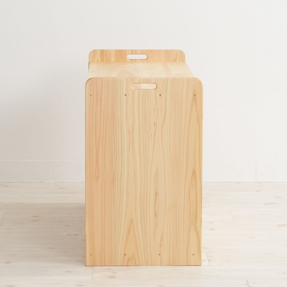 国産のヒノキを使って製作しています。傷や凹みもつきますが、子どもたちの思い出と共に、あめ色に風合い良く経年変化していきます。