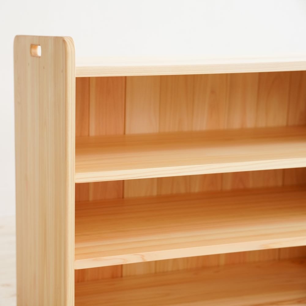 木のおもちゃと子ども家具専門店が製作する取手付きの玩具棚です。この商品はおままごとの道具や積み木、パズルなど子どもたちが日常使うおもちゃを収納するのにおすすめのおもちゃ棚です。1歳~6歳向けの商品で、子どもの発育を促してくれます。国産材使用、植物油で口に入れても安心レベルの高品質な子ども用商品です。