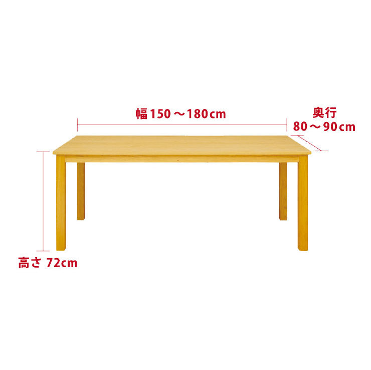 サイズ:幅150~180cm×奥行80~90cm×高さ72cm