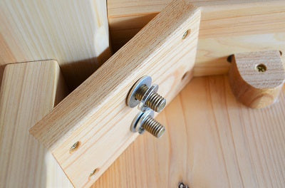 湿気の多い時期には膨らみ、乾燥すると収縮します。木の乾燥は十分に行っているのですが、稀に木のおもちゃの箱に亀裂が入ったり、家具の引出しが少し抜けにくかったりといった動きが見られる場合があります。