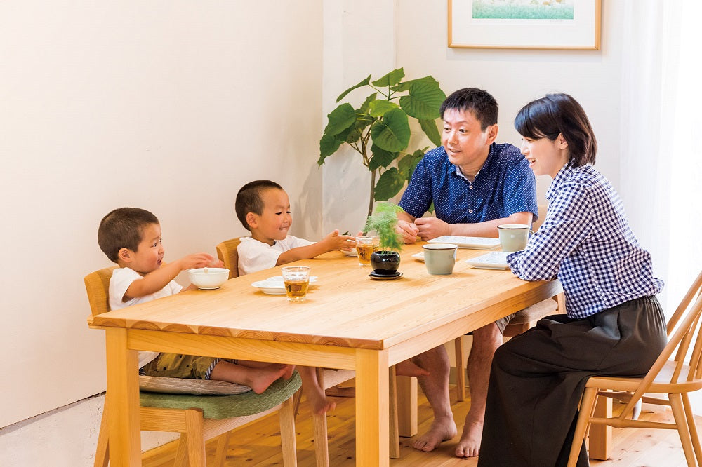 家族のだんらんには欠かせない家具 無節のヒノキを使用
