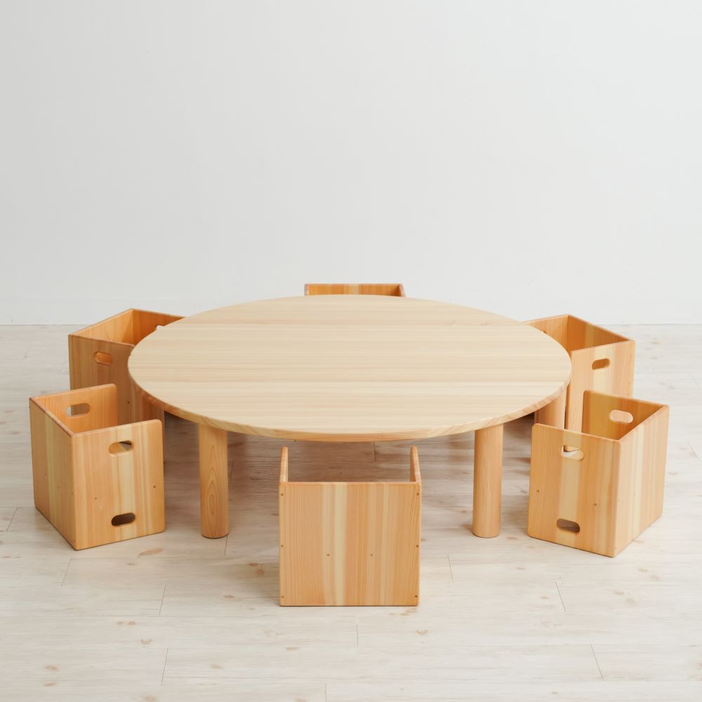 2台を合わせて、丸テーブルとして使うのが保育園でも多い使い方です。みんな向かい合いながら遊んだり、食事をするスペースとして便利に使うことができます。