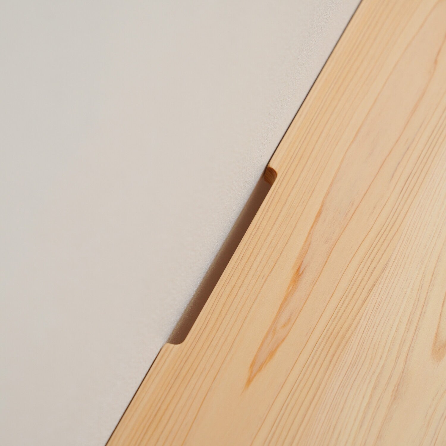 デザインが変わらない範囲で同じ色の木材を使い分けます。