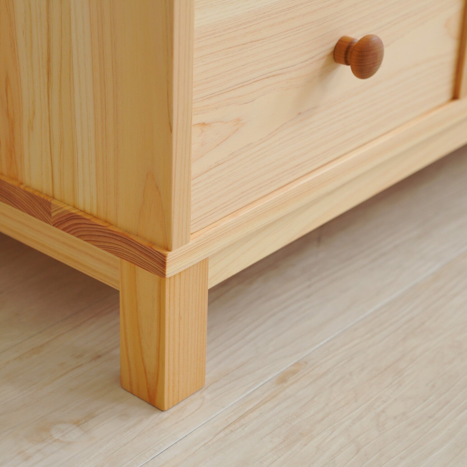 引き出しの底板は杉の一枚板で出来ています。仕切り等はありませんが、衣類を入れていただいても十分に使える品質です。