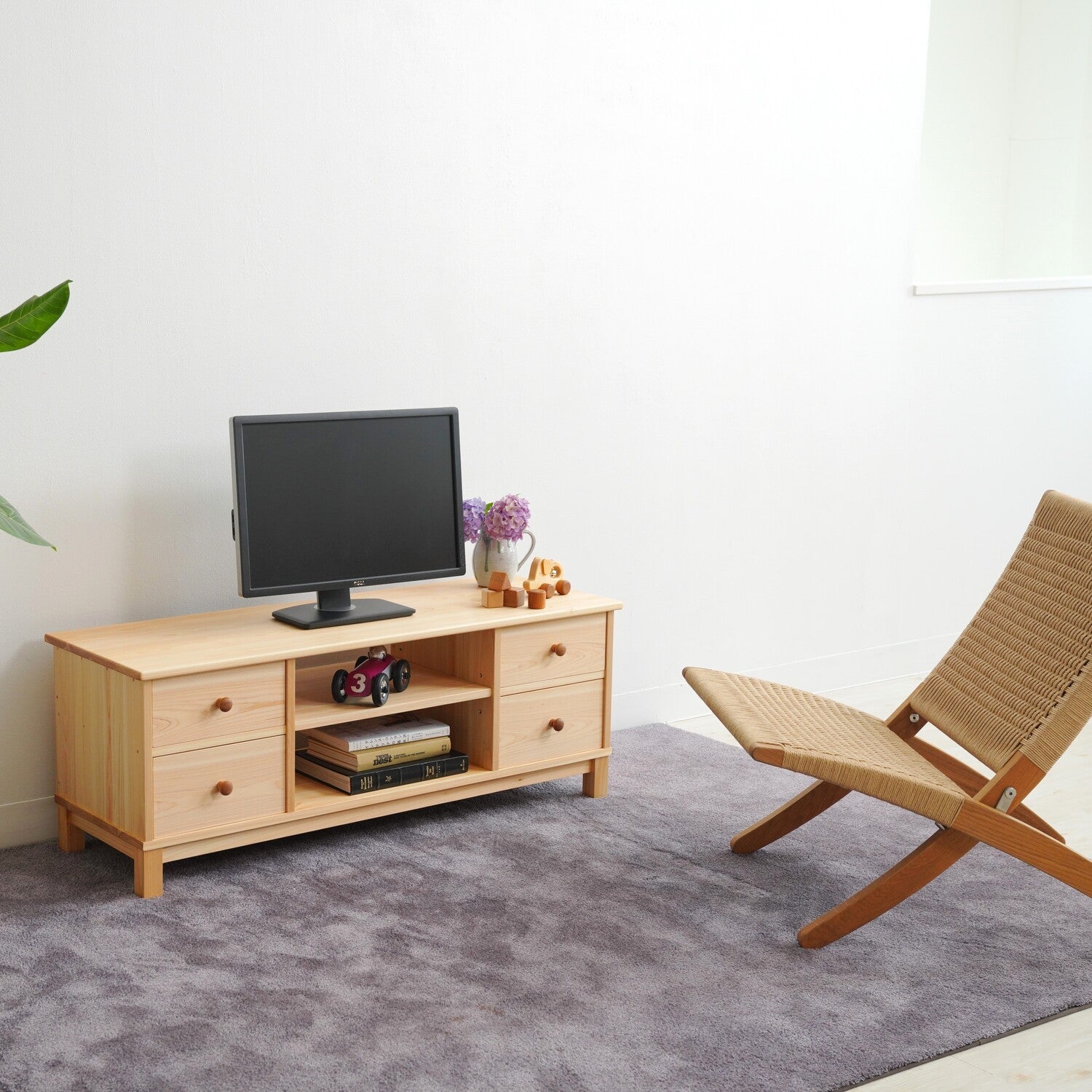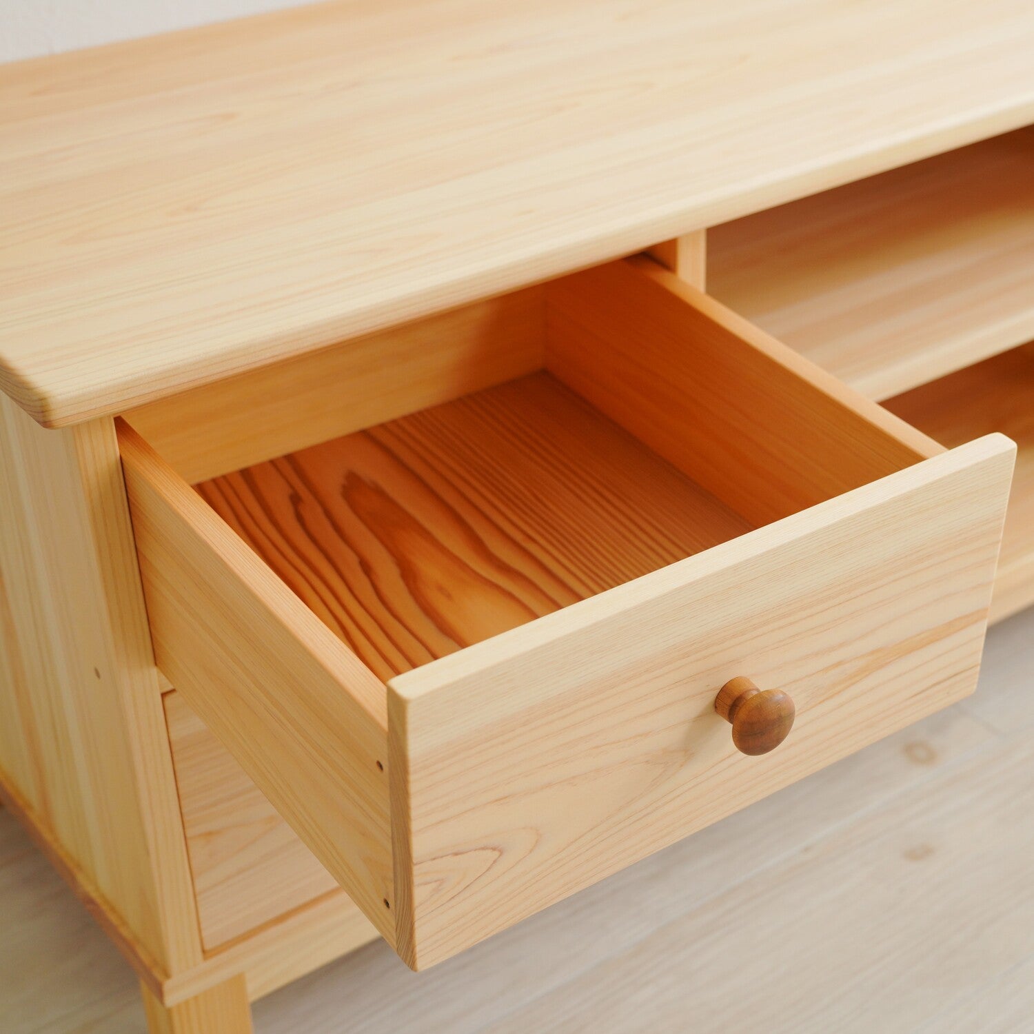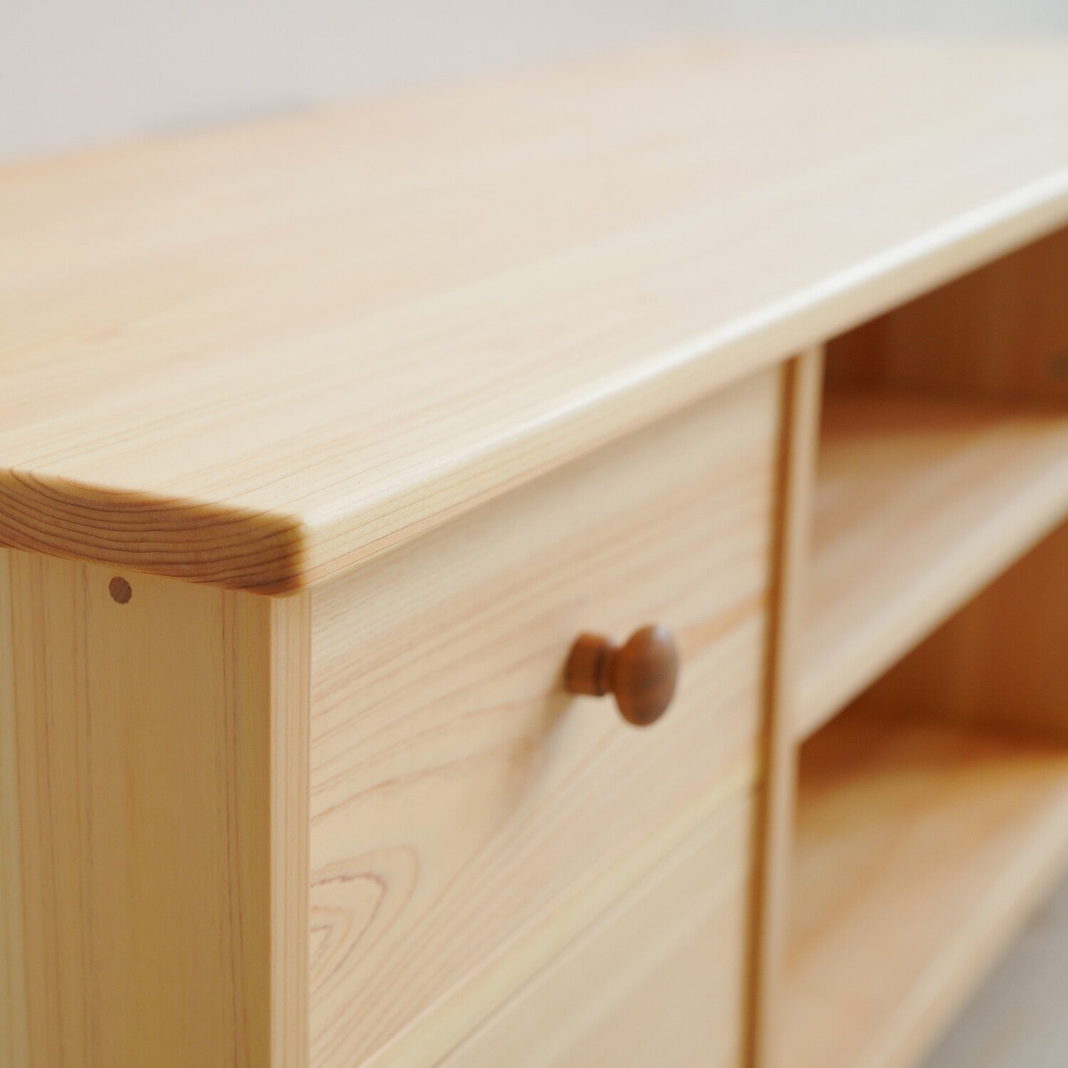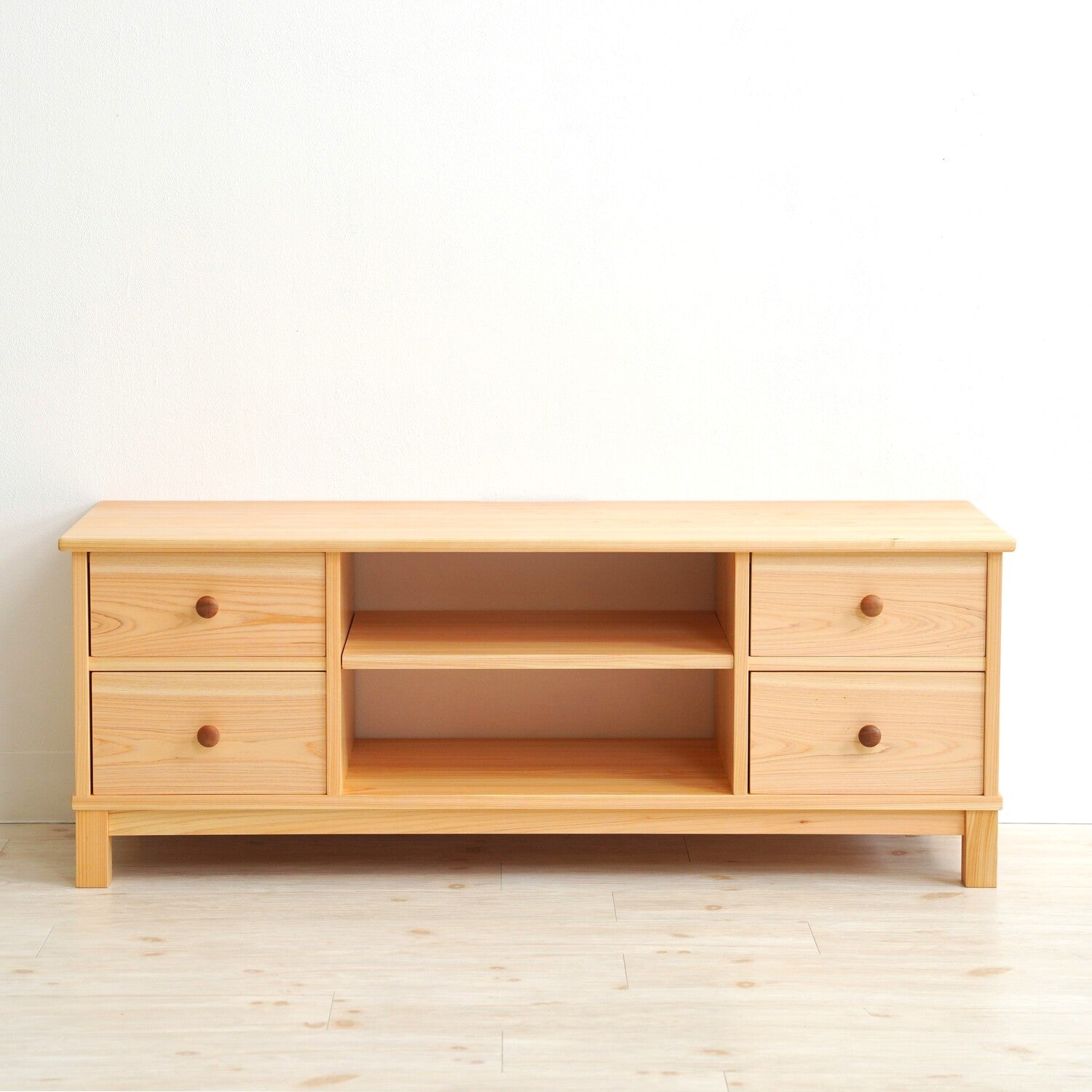 木のおもちゃと子ども家具専門店なかよしライブラリーが製作するひのきのテレビボード120cmです。この商品は国産材で職人が手作りしています。脚付で掃除も便利。オープンラックは多用途に使えます。引き出しも4杯付。国産材使用、植物油で口に入れても安心レベルの高品質な子ども家具です。