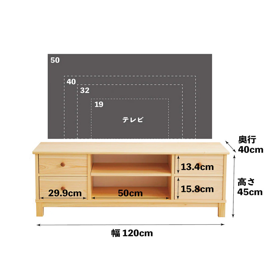 幅120cmのテレビボードです。引き出し4杯付きのシンプルな造り。