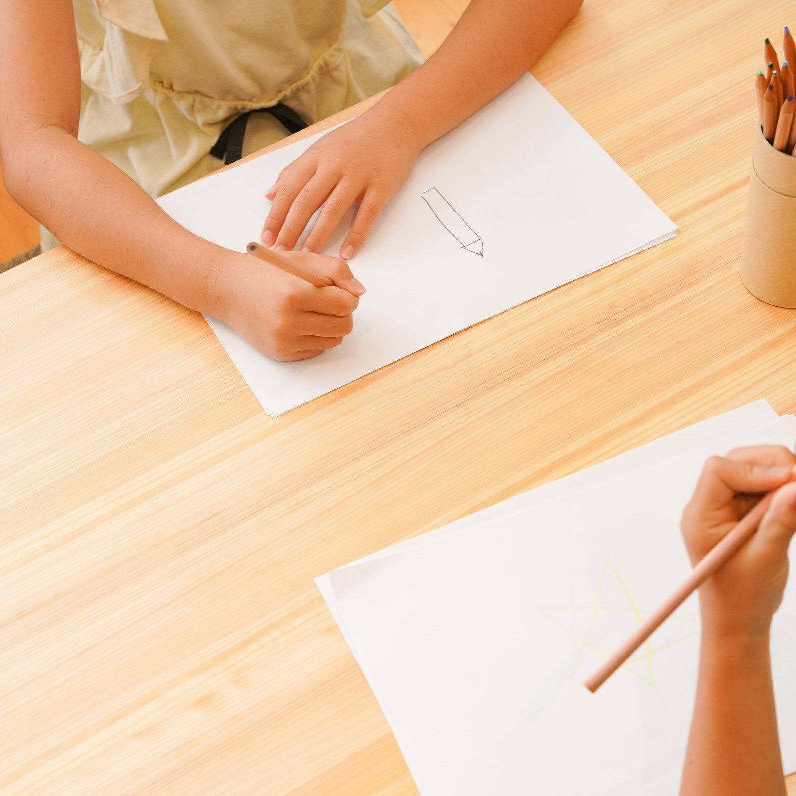 角テーブルはサイズに合わせたご提案が可能です。サイズは2つのバリエーションをご用意。高さも1歳児用~5歳児用まで 選べますのでご注文時に選んでください。