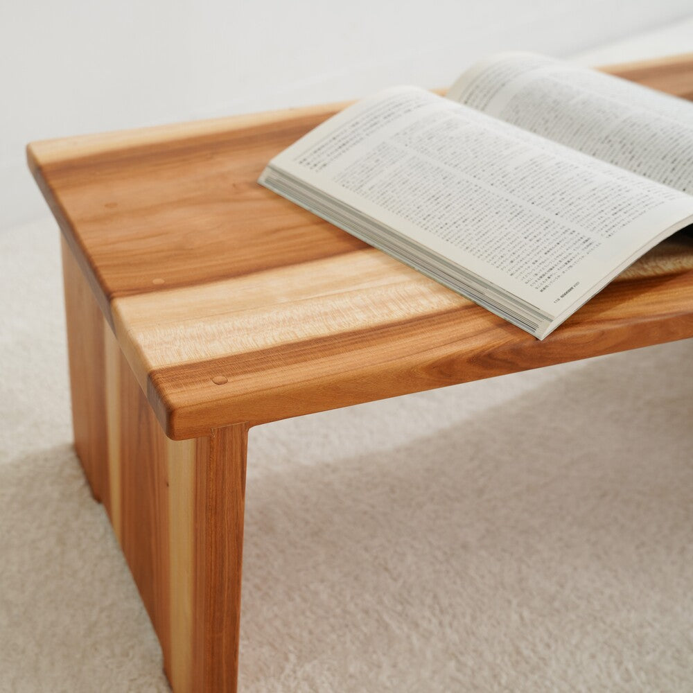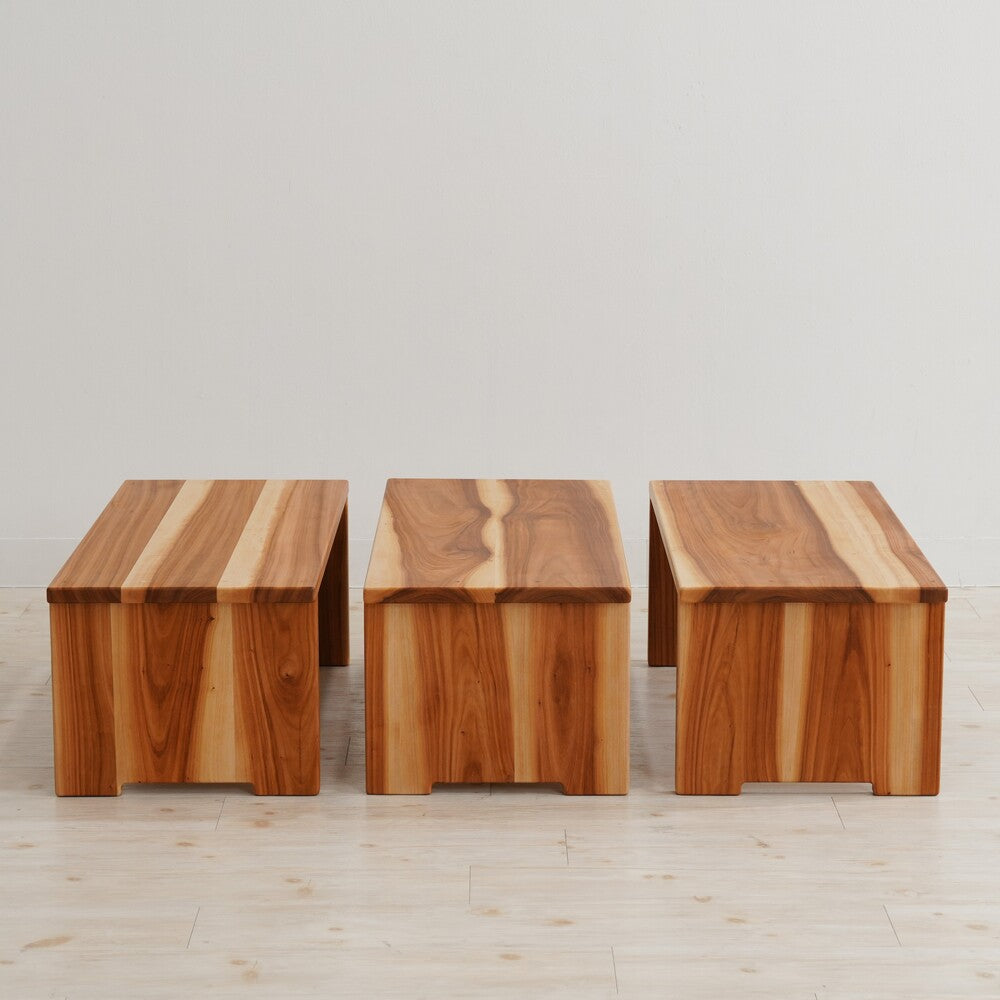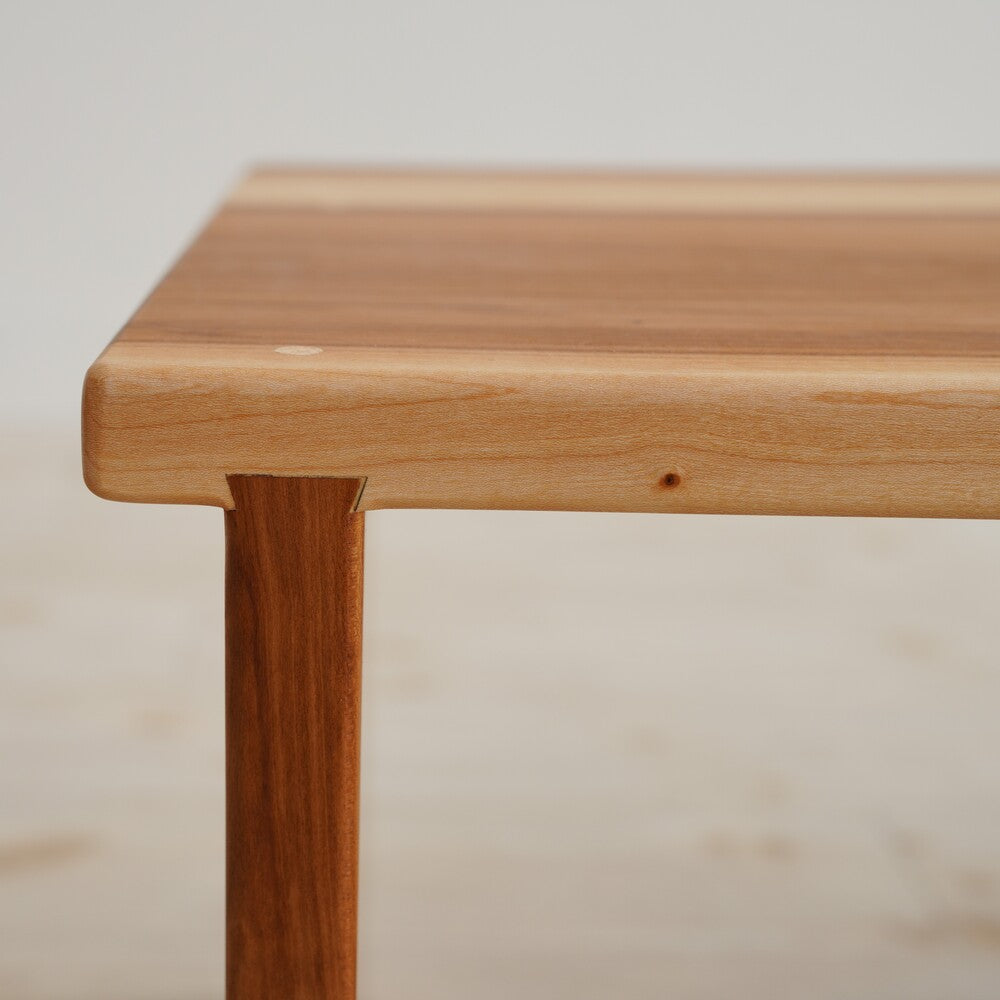 広葉樹の素材の良さをそのまま生かした、テーブルができました。【大人子どもローテーブル】材種は高知県のシュリサクラ材で製作しています。白と赤褐色の濃淡がはっきりと出た素材は世界に一つだけの魅力を味わえます。
