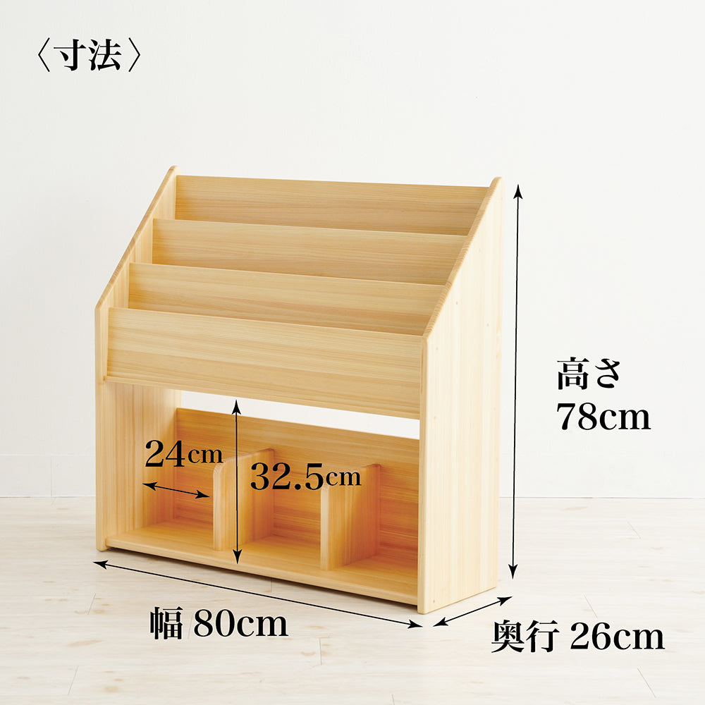 子どもたちがいつも絵本とともに生活ができるように、絵本を選びやすく、ストックもできる絵本立てです。絵本はお部屋にあるだけでとても雰囲気が豊かに、やさしくなります。絵本好きの子どもたちに国産の桧で製作したこの絵本棚は、皆様のお部屋を素敵な木の香りで包み込みます。