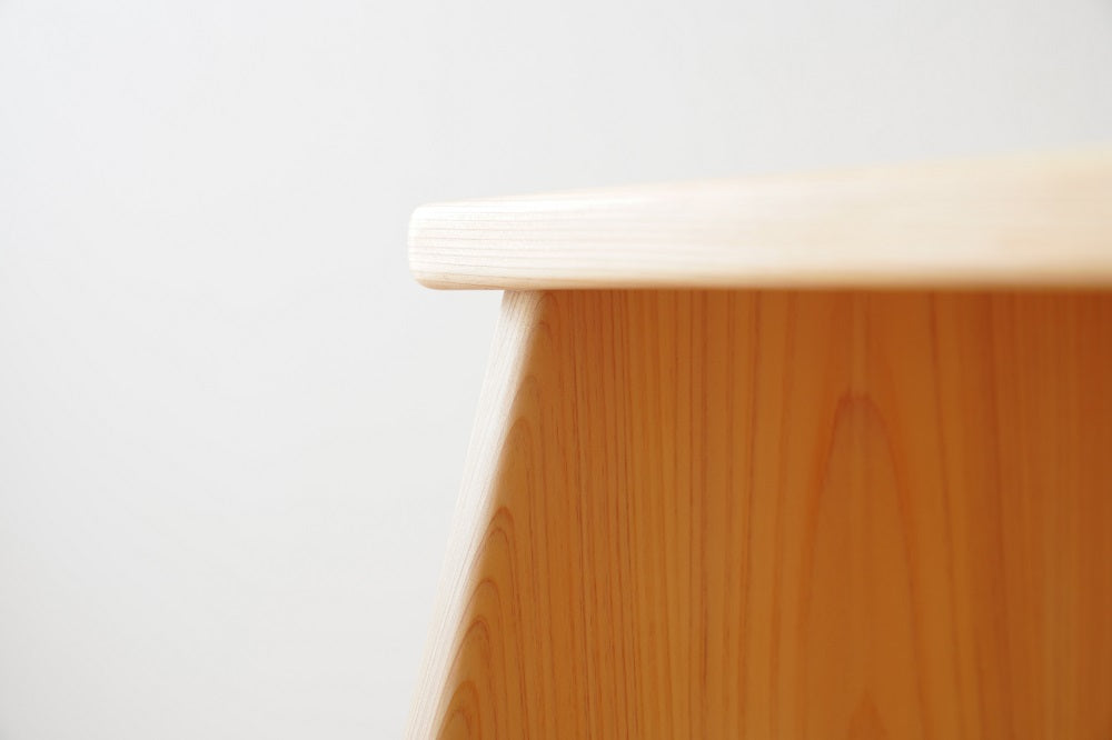 側板と中板の接合部分や角の丸み等細部に至るまで細かく研磨をし、丁寧に塗って仕上げます。触った時に思わず頬ずりをしたくなるレベルの仕上がりです。ツルツルで気持ちいい!!こう言っていただいて初めて、なかよしライブラリーのモノづくりができたと感じます。香りや肌触りなど5感で体感してほしいです。