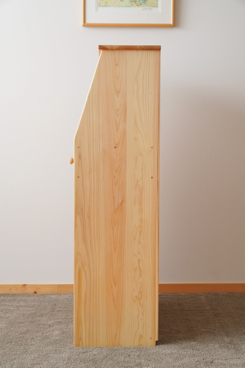 10年以上前に、婚礼家具の販売に携わっていました。木製タンスの引出しを出し入れすると、隣の引出しが勝手に開きます。「枠に対して職人さんが引出しをピッタリに作っているから空気に押されてこうなるんだ」と教えてもらったのを覚えています。良い作り=寸法をミリ単位で合わしていく。この固定概念がなかよしライブラリーの職人さんにも少なからずあります。学用品しっかり収納チェストの引出しも空気に押されて勝手に出てきます。良いものを作り続けたいです。