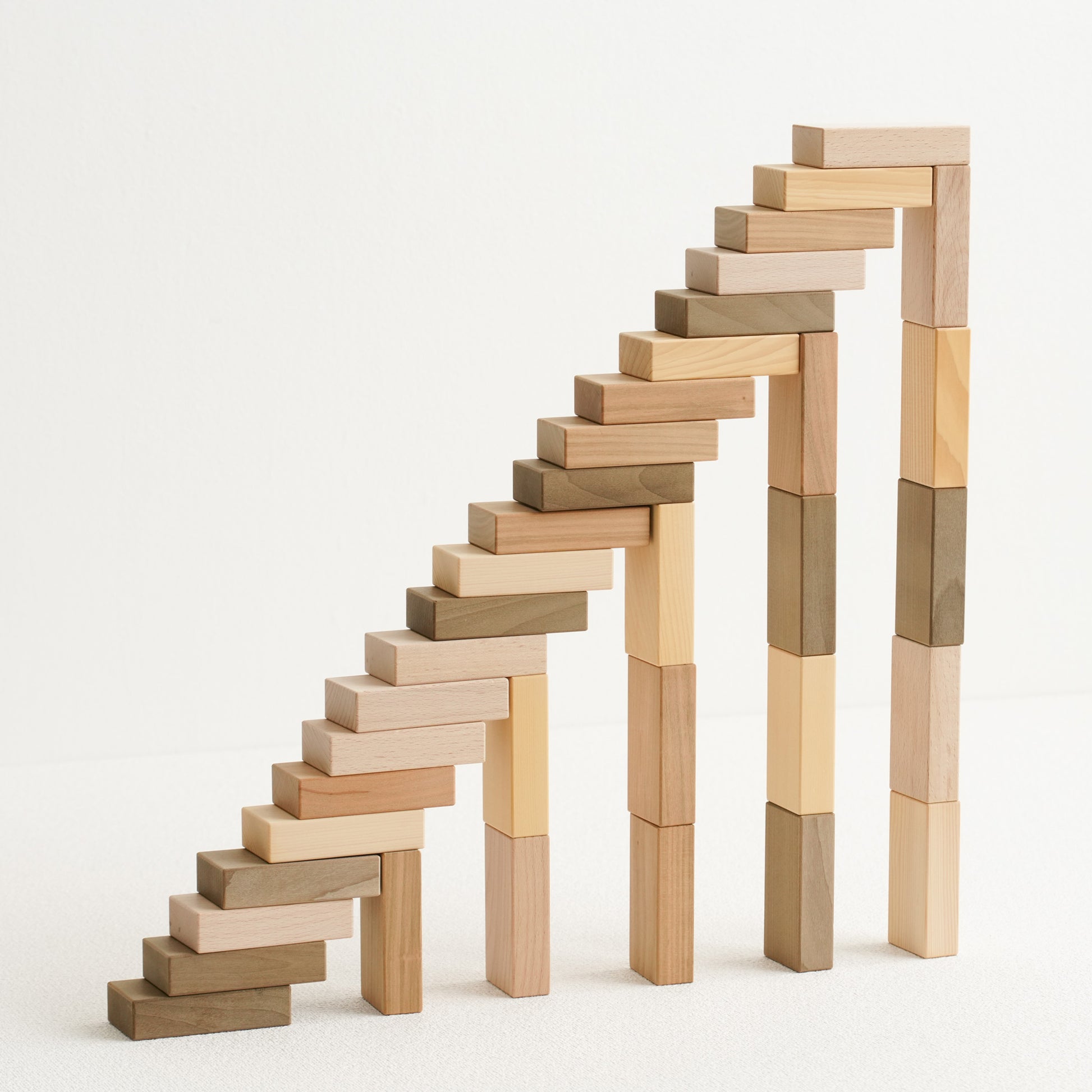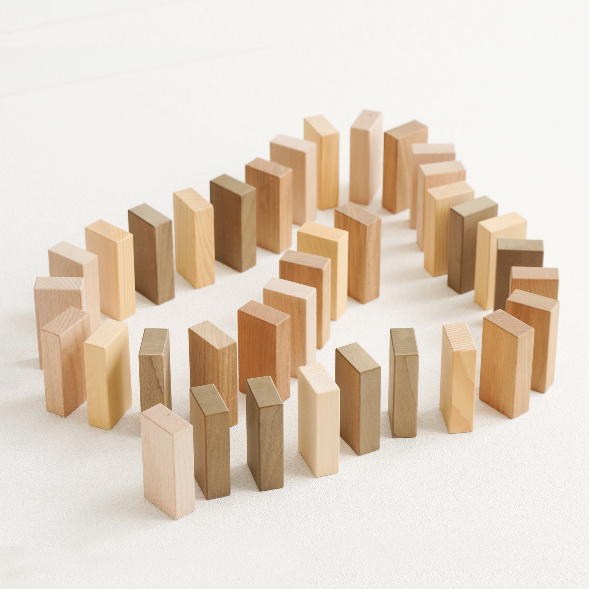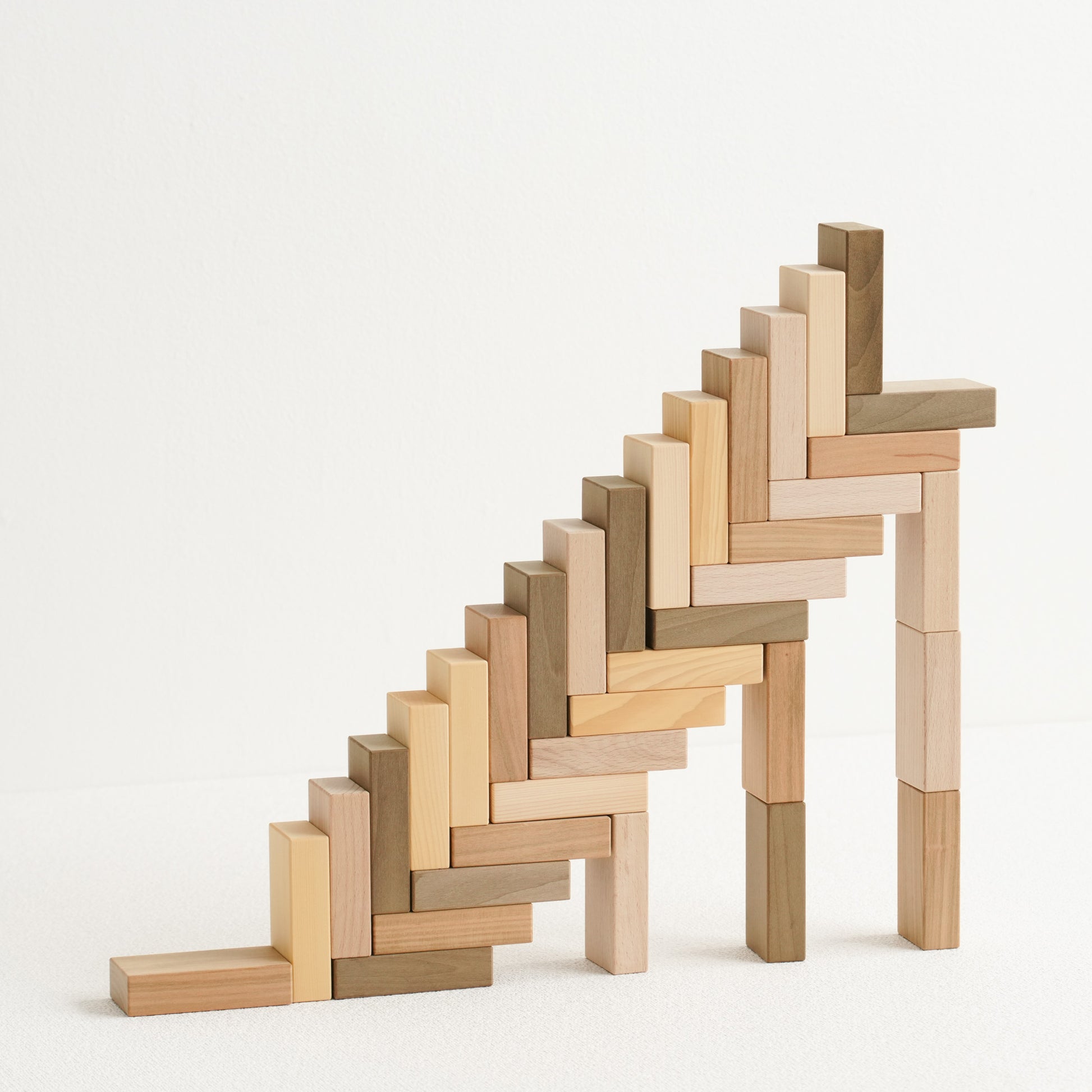 誰でも簡単にできるし、複数人で遊べる基本はまず、ドミノ倒し。カラフルな広葉樹を並べるだけで気持ちが良い。