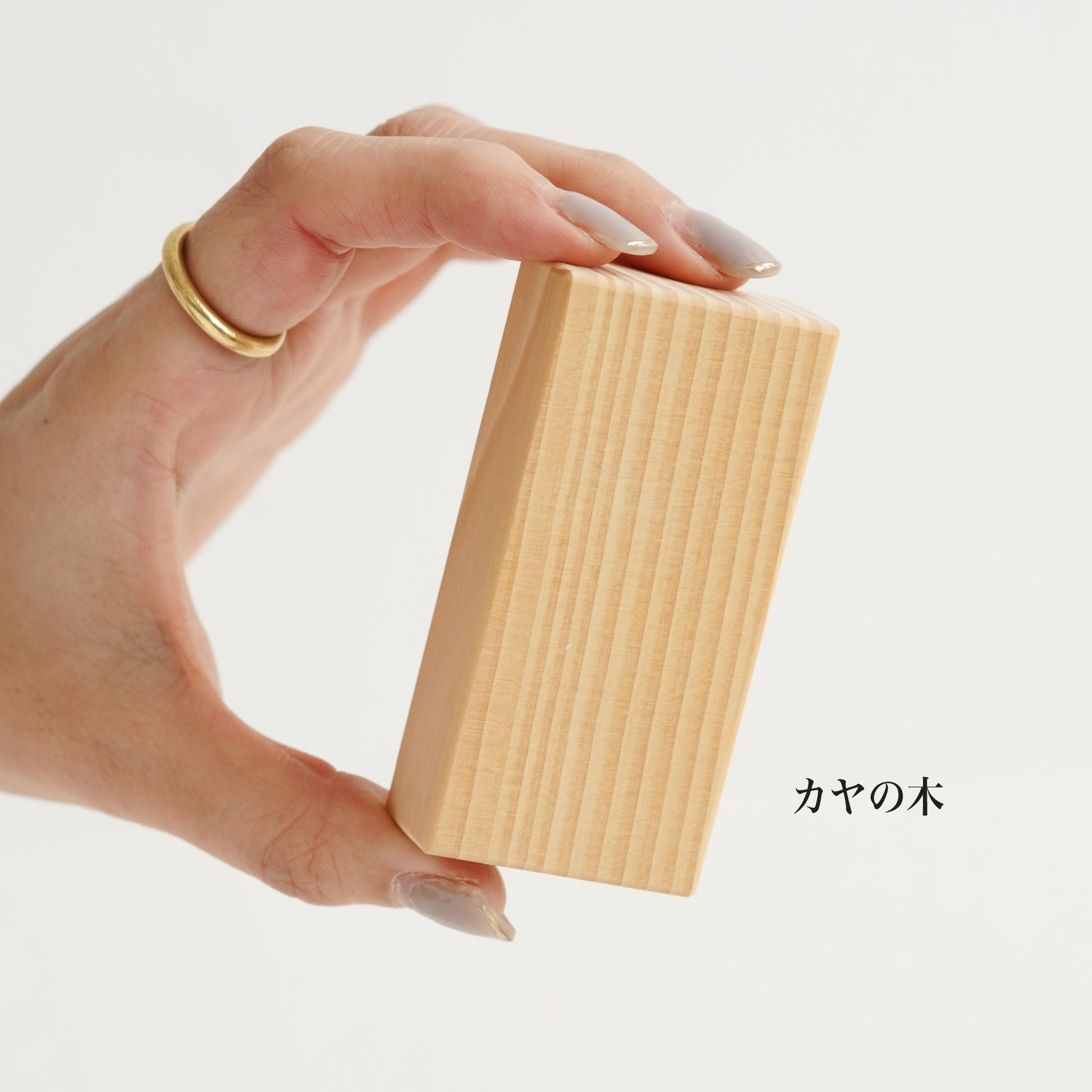 黄色い木肌が特徴的。4つの中でカヤの木だけ針葉樹です。他の木と比べると香りがとても強いです。大きなカヤの木は囲碁や将棋の盤として使用される高級材として有名です。