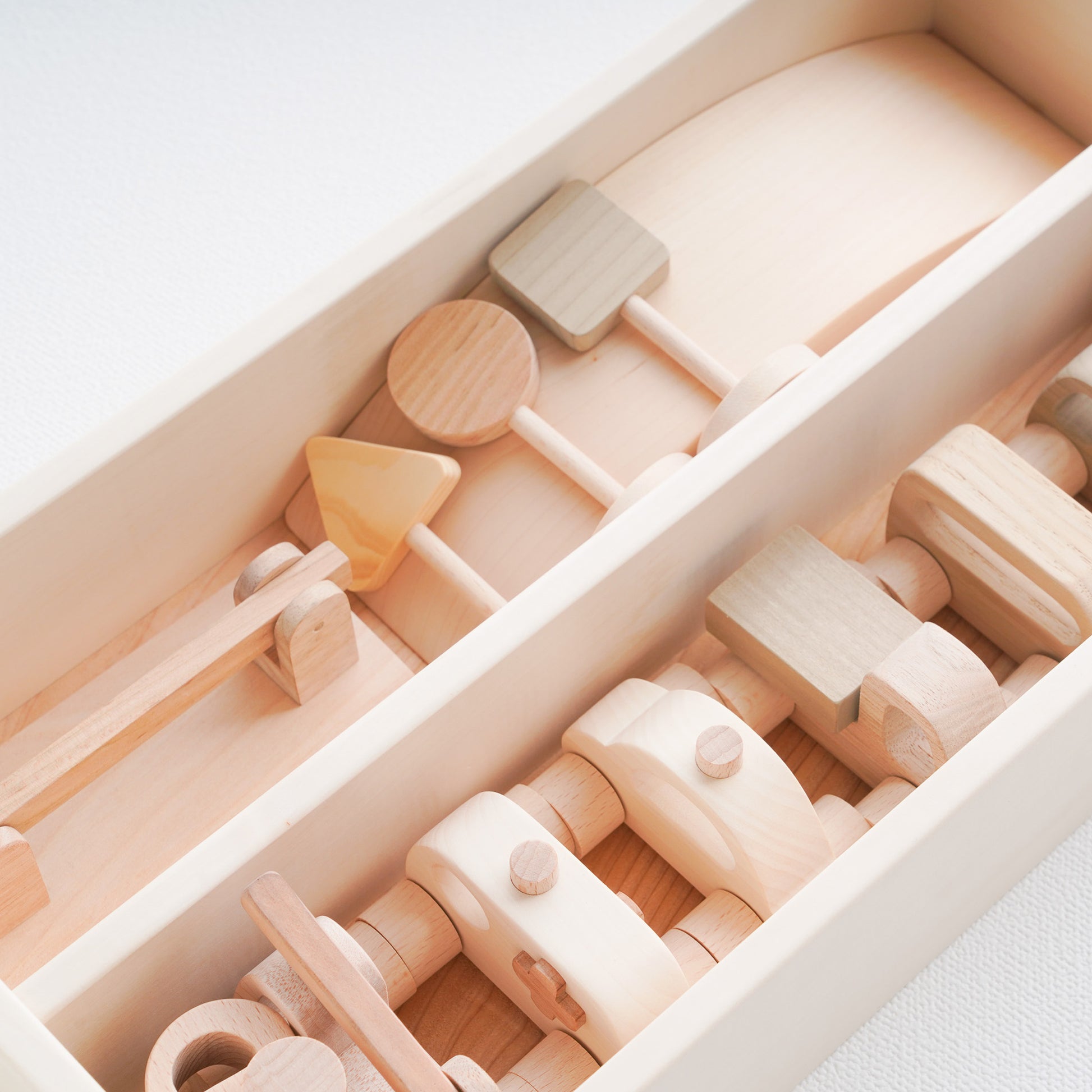 2018年グッドトイ受賞玩具した、創造力を育む車のおもちゃです。高知県産のヒノキや無垢材を使用し、安心・安全にこだわった国産品質。手のひらサイズで握りやすく、幼児の手先の発達や空間認識力、創造力を育てるよう設計されています。名入れ対応・贈答用にもぴったりな、親子で楽しめるシンプルで上質な木のおもちゃです。