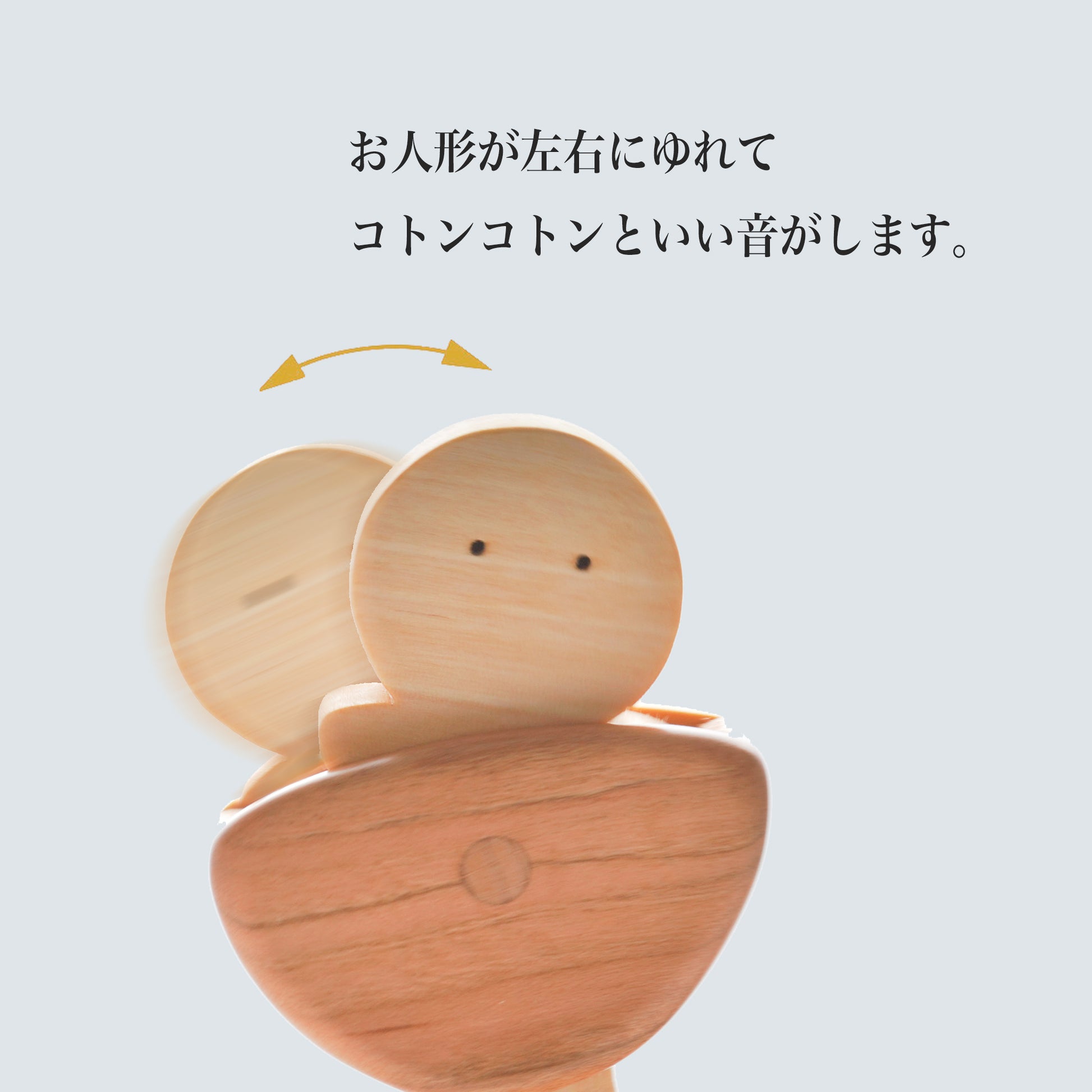 贈り物としても、我が子へのファーストトイとしても、人気のゆらゆらゆりかご人形。人形の頭が左右に揺れて、コンコンコンと優しい音色をお届けします。