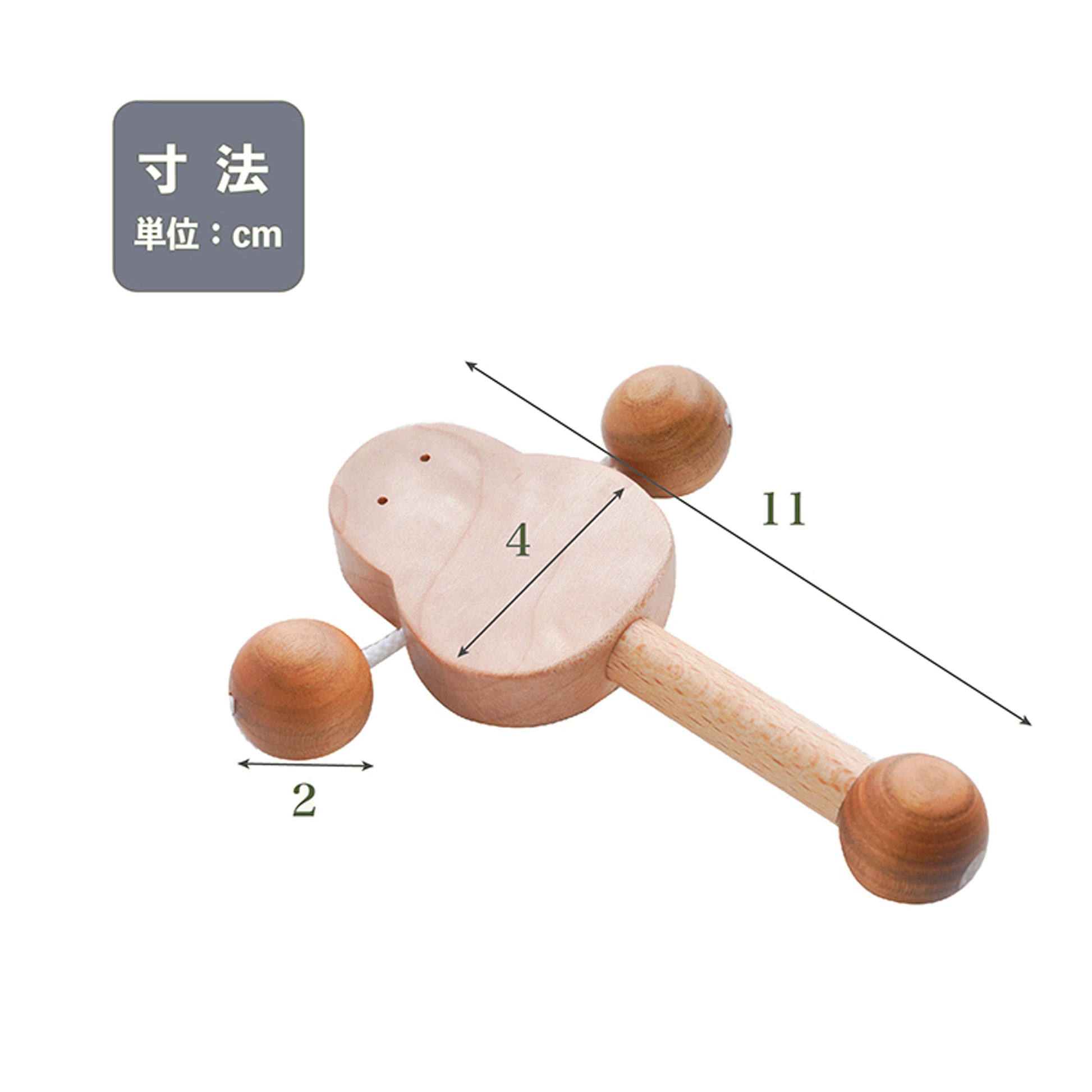 振ると音が鳴る楽しい木のおもちゃです。赤ちゃんがつかみやすいサイズ感で、桜とカエデの木球による素敵な音が赤ちゃんの感覚を刺激します。口に入れても安全な自然素材使用と優れた耐久性で大人気商品です。接覚や手元の発達をサポートします。ご出産祝いにも人気です。