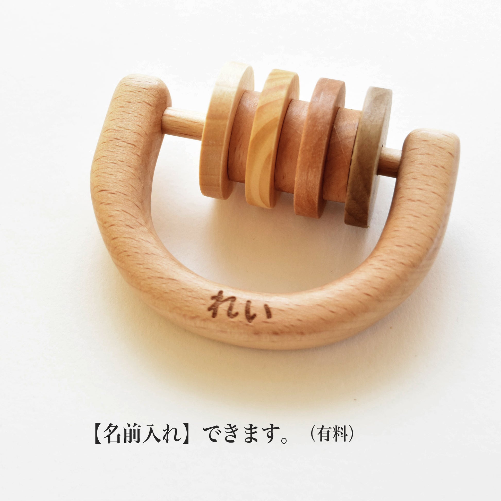 贈り物用に、我が子へのファーストトイとして、名入れができます。漢字、ひらがな、ローマ字が印字できますので、赤ちゃんの最初のおもちゃとして贈ってあげてください。