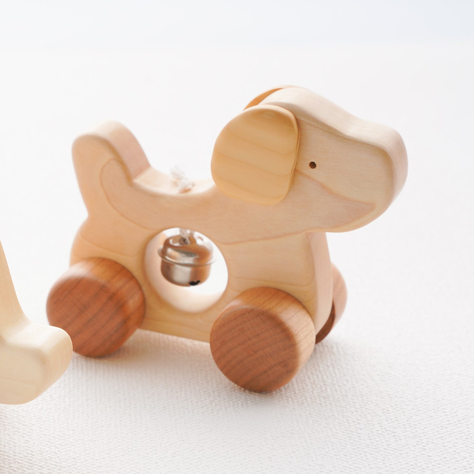 この木の動物の手押し車は、なかよしライブラリーが始まったころから作り続けています。