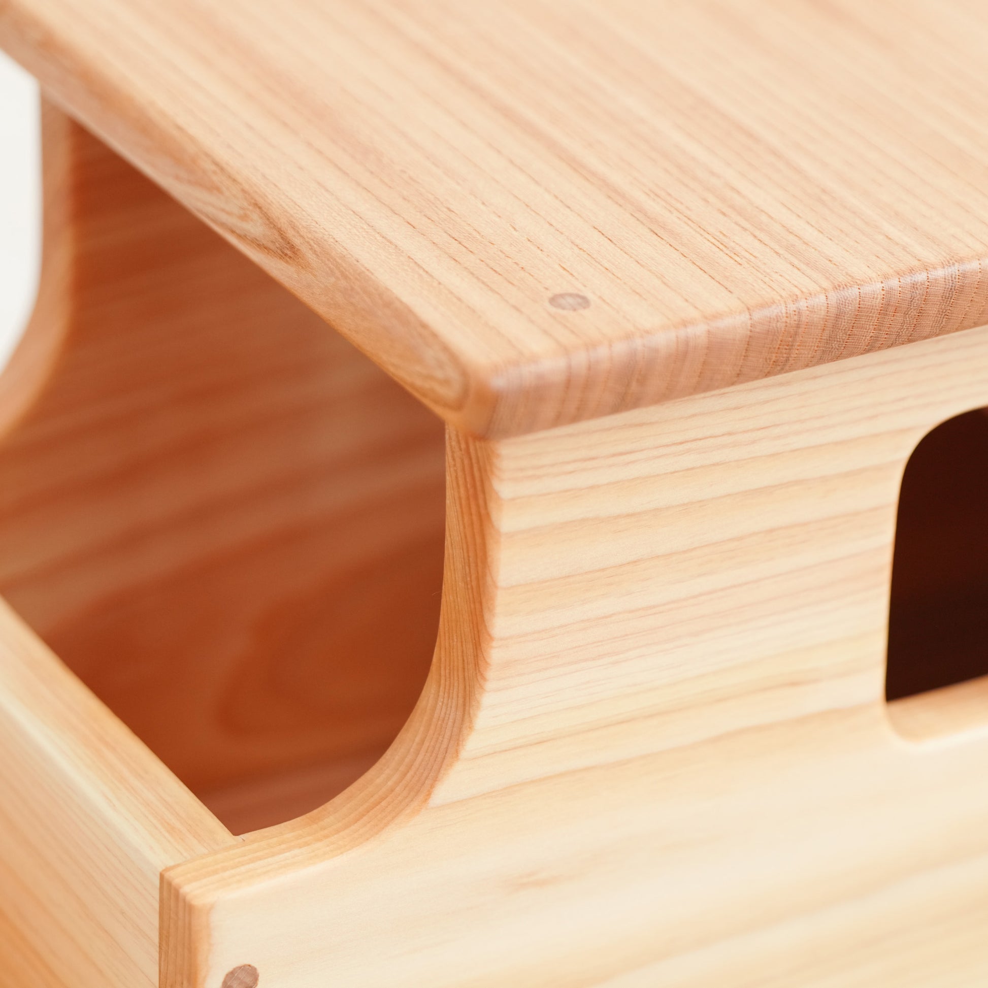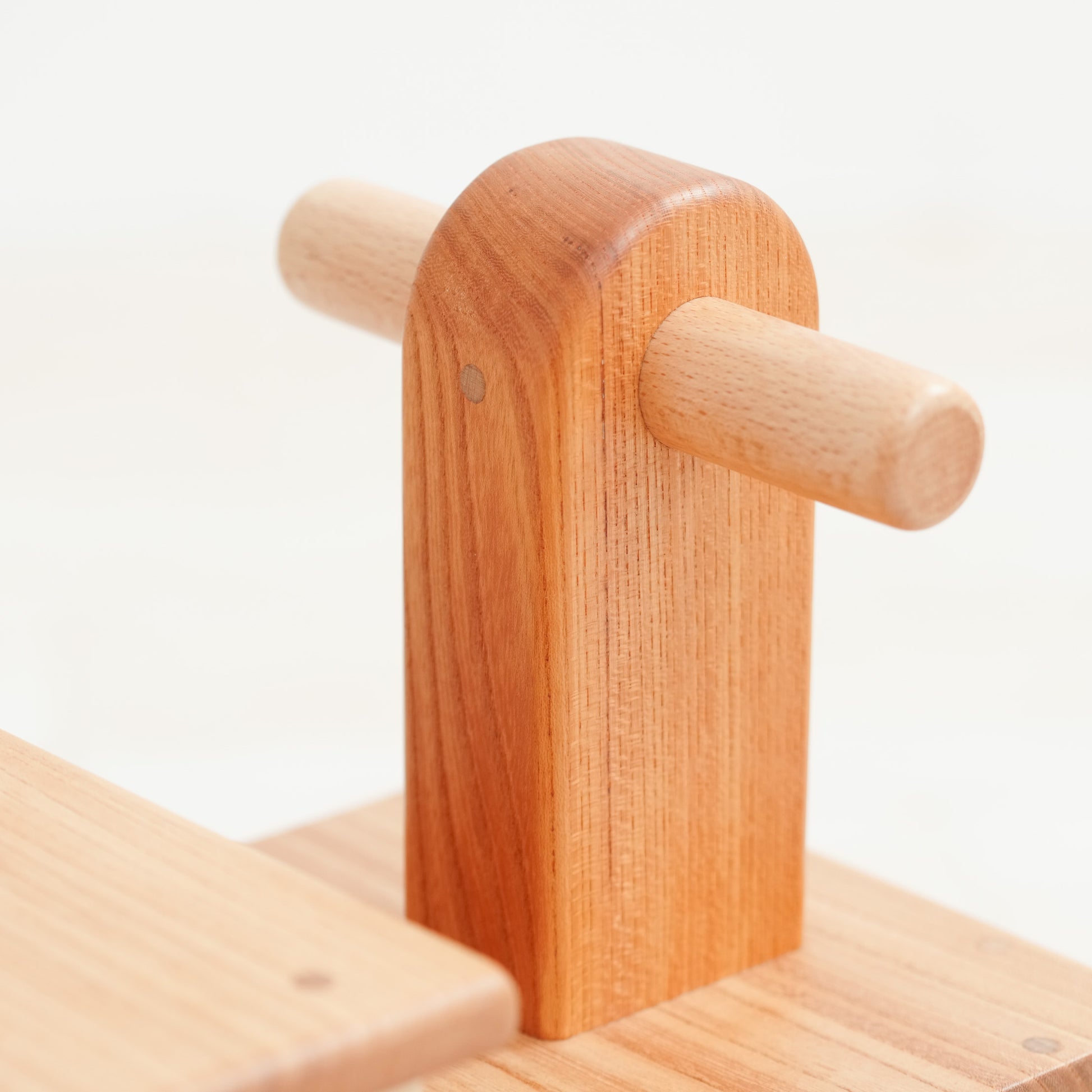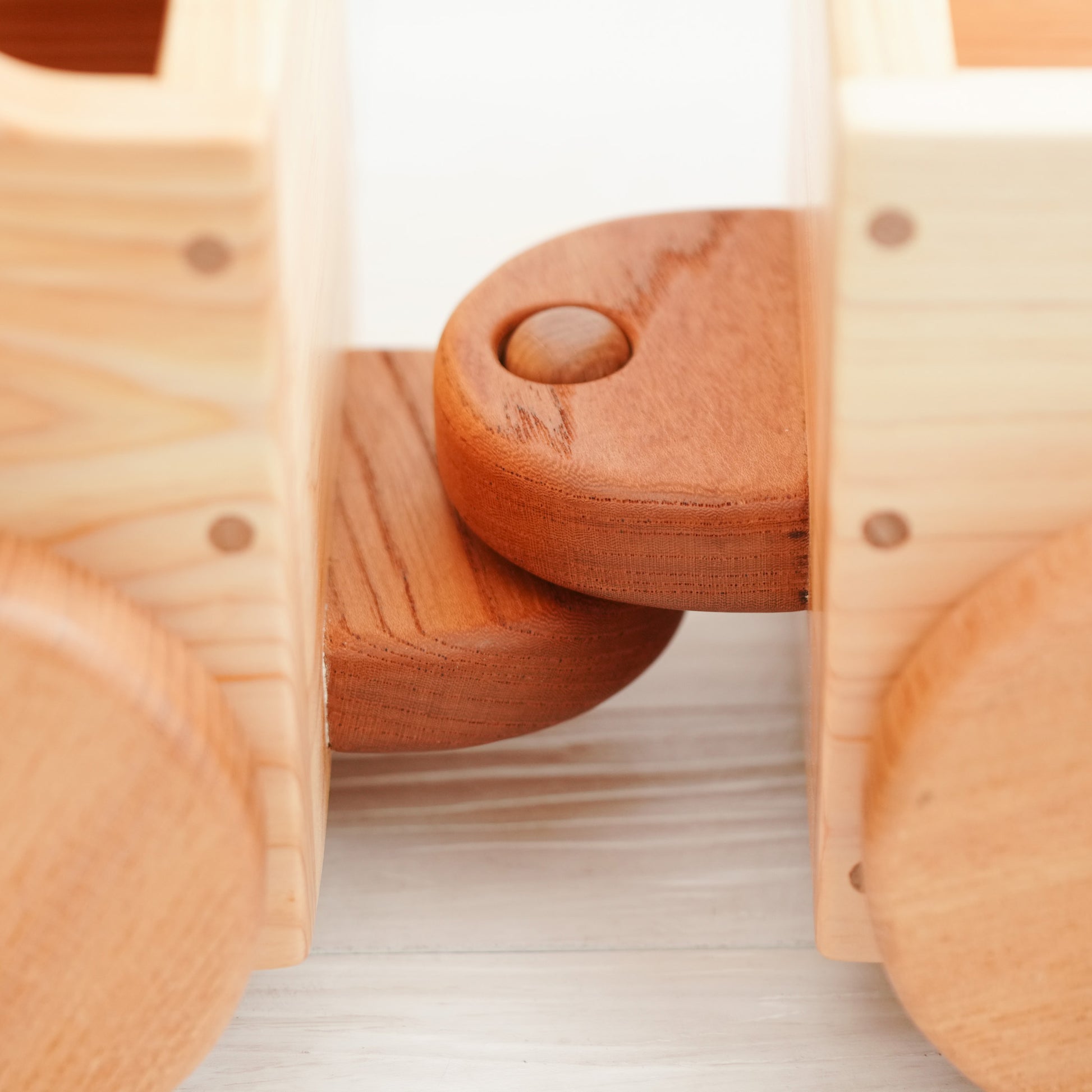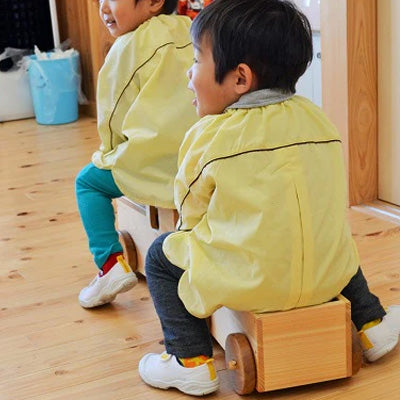 子どもが乗っても折れないように堅いケヤキの木を使います。子どもが乗ってゴロゴロ遊んでも壊れない頑丈な作りです。