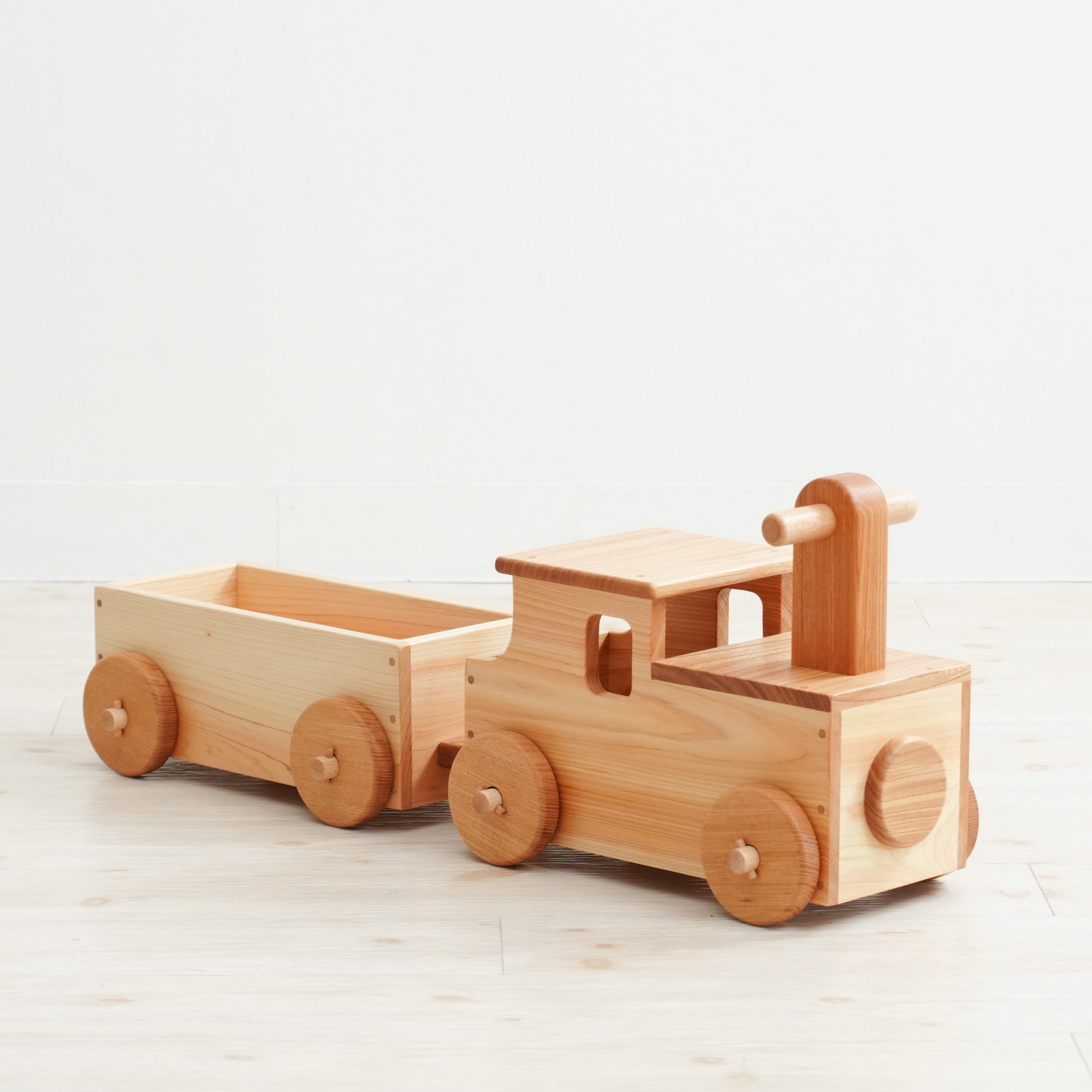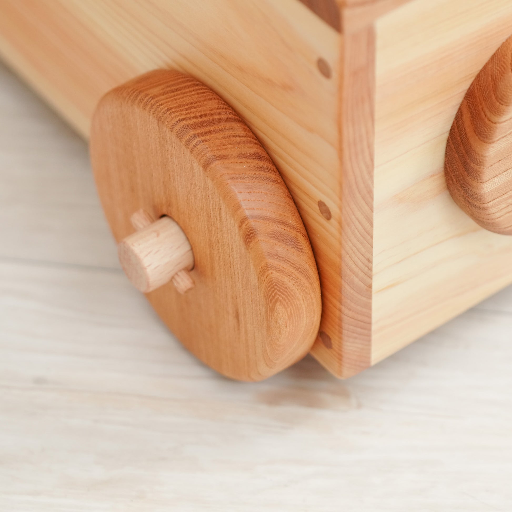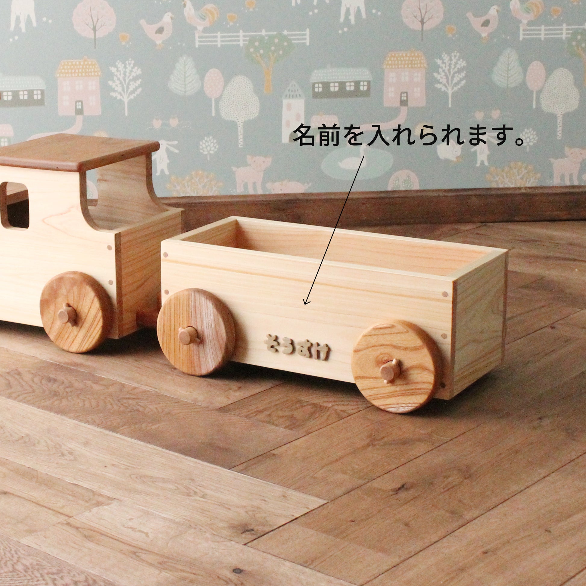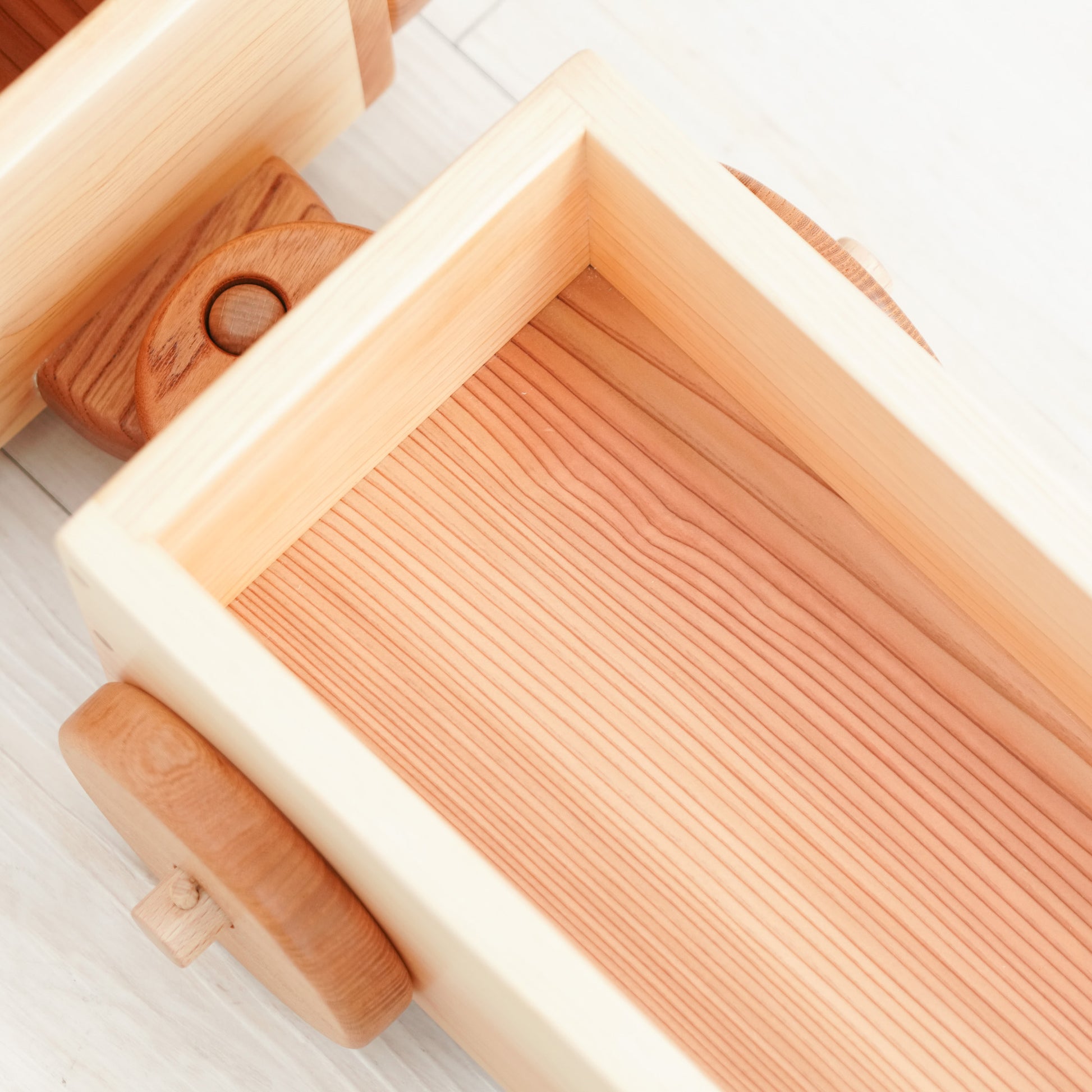 荷台はおもちゃや人形が乗せられるように、底板も杉板で頑丈に製作しています。