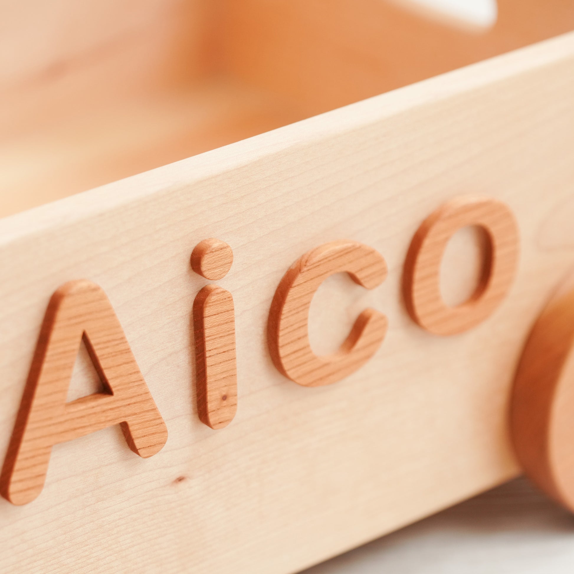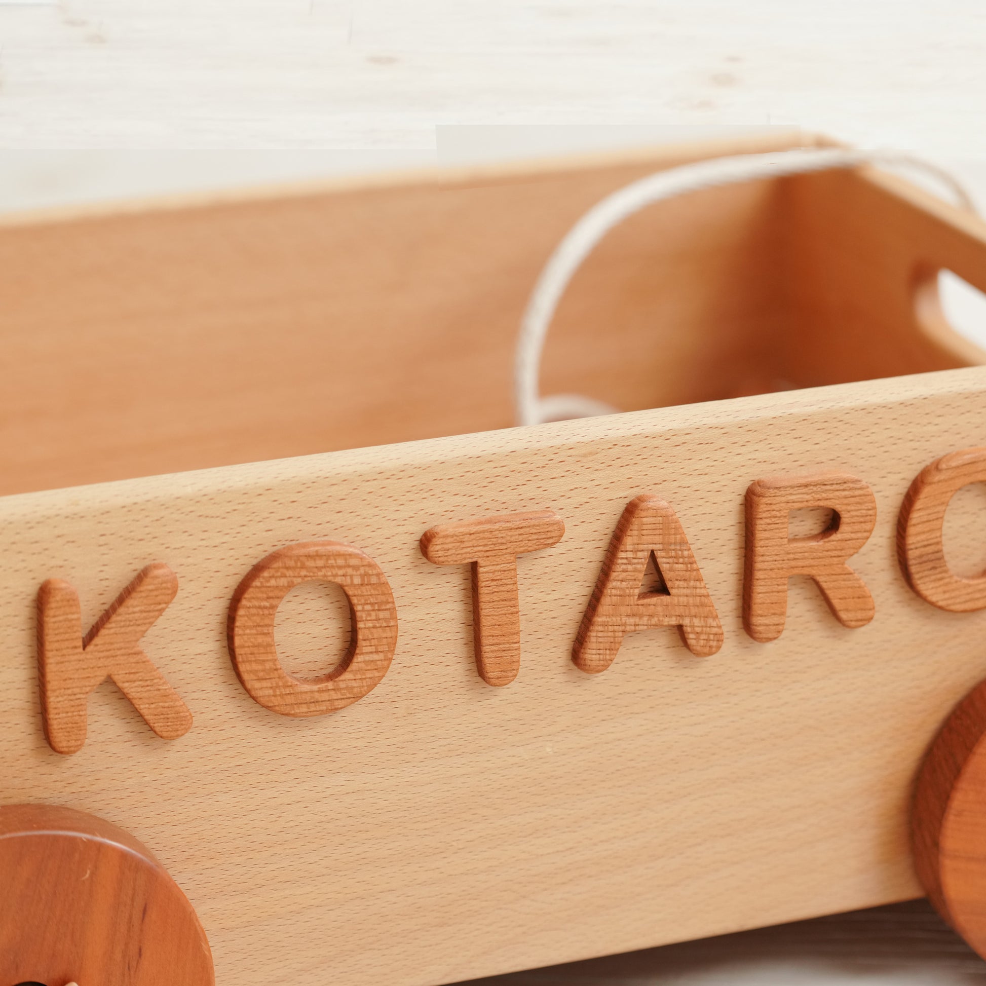 名前を一つひとつ切り抜いて、オリジナルのくるまをご提供いたします。ベースの箱はカエデやブナの木を使いケヤキや桜の木を切り抜き仕上げます。塗料は安心安全塗料りボスオイルを使用