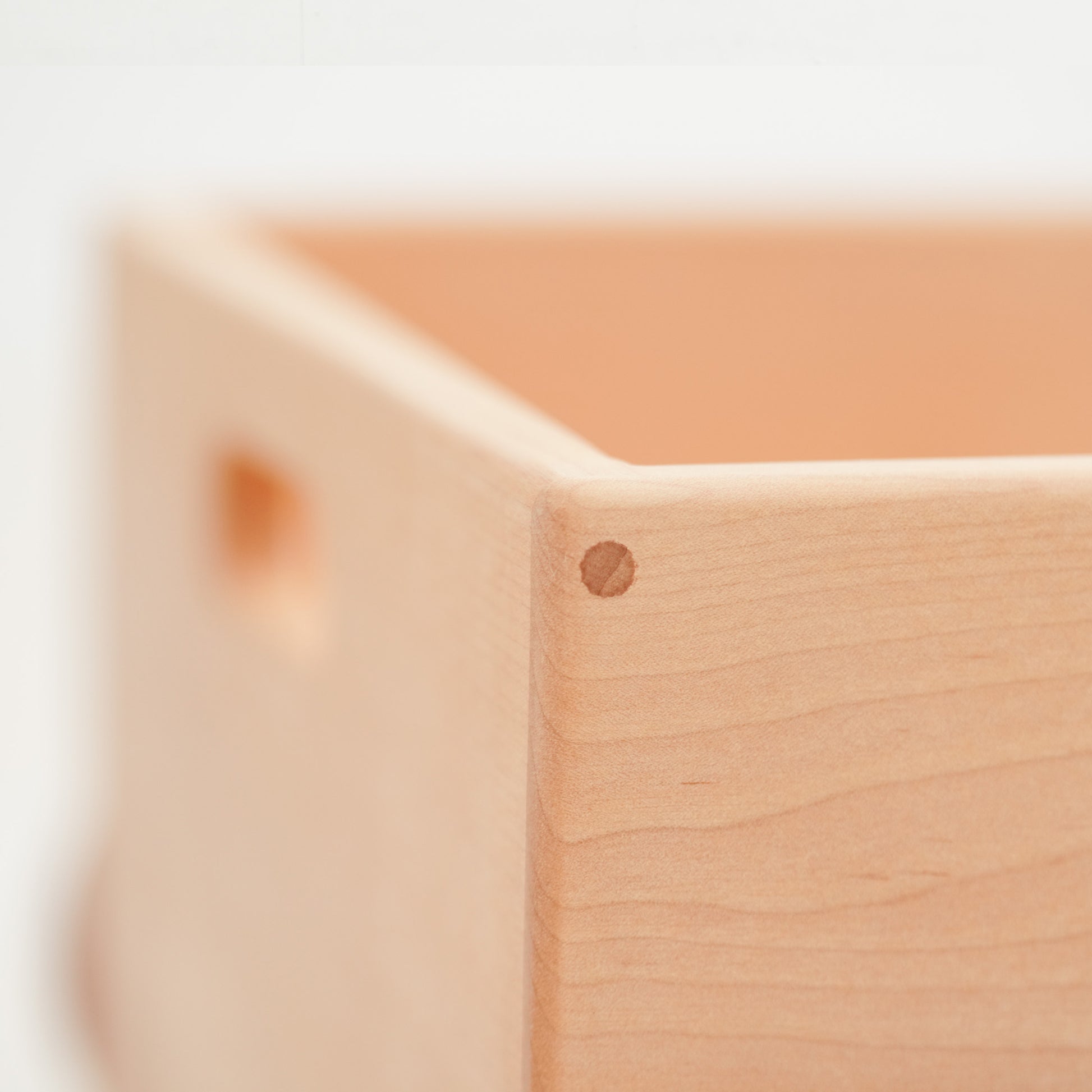 湿気の多い時期には膨らみ、乾燥すると収縮します。木の乾燥は十分に行っているのですが、稀に木のおもちゃの箱に亀裂が入ったり、家具の引出しが少し抜けにくかったりといった動きが見られる場合があります。