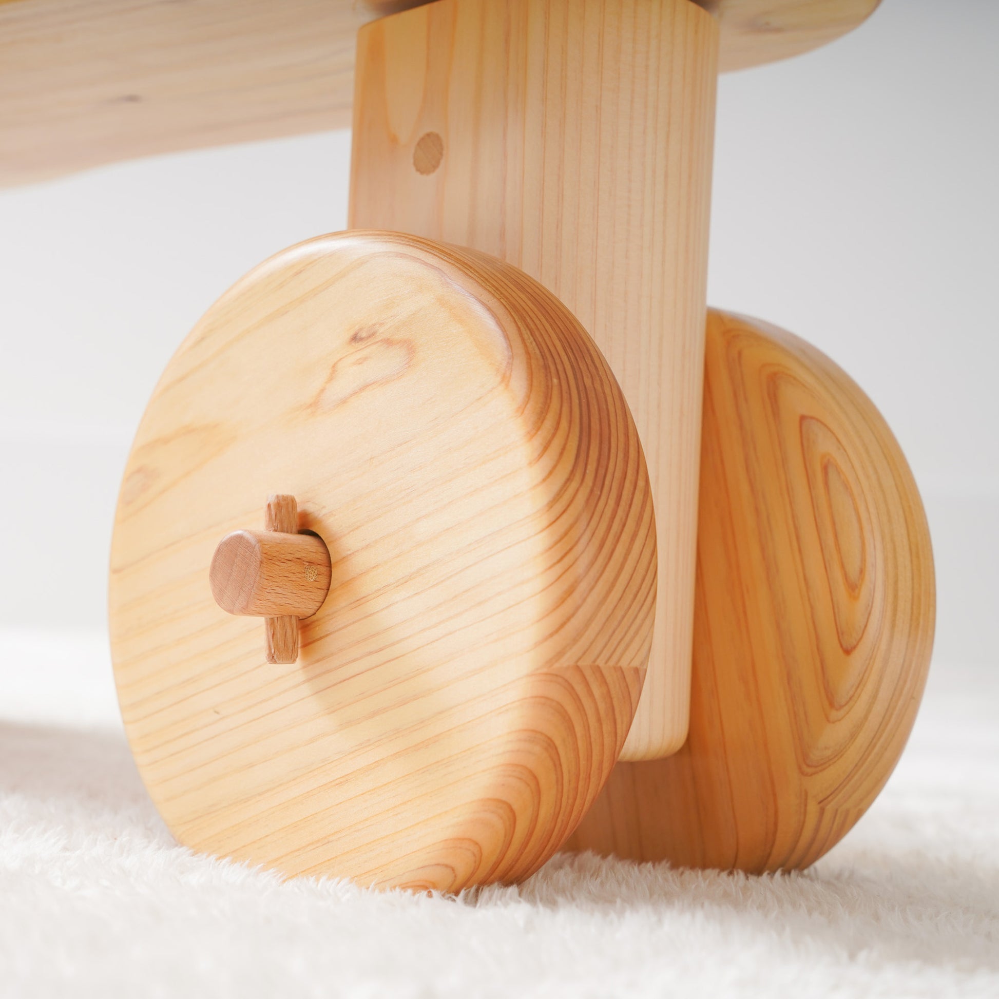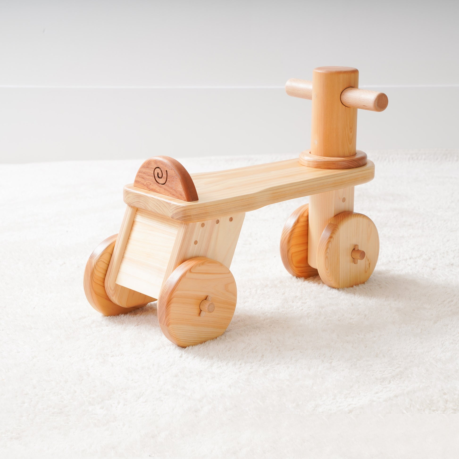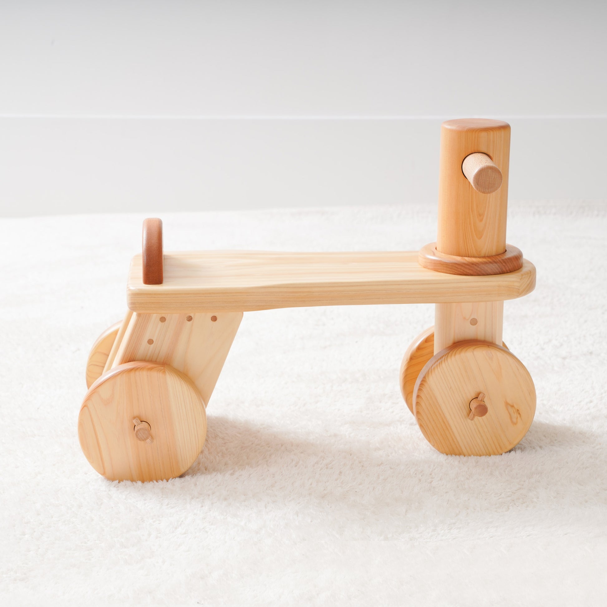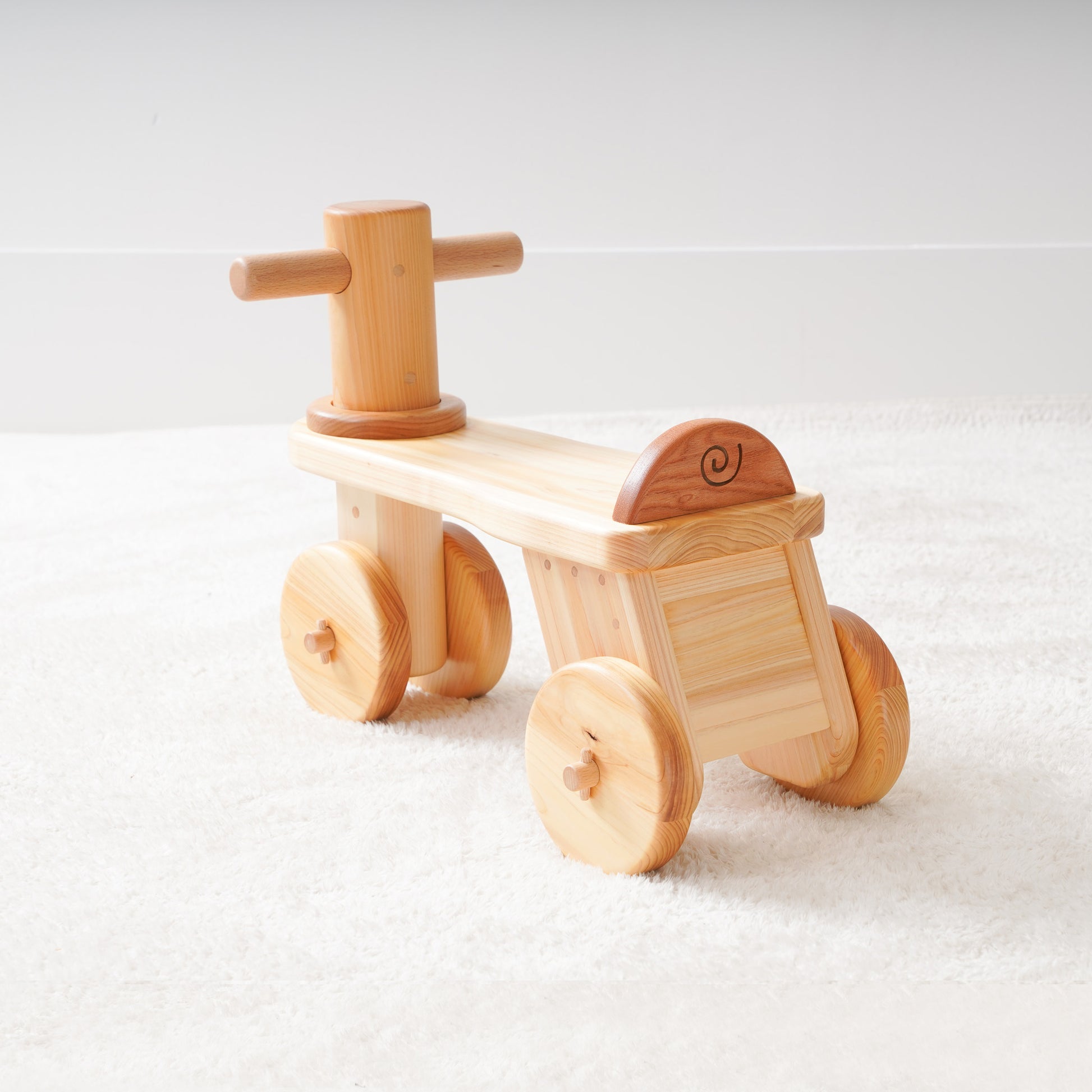 1歳から乗って遊べる乗り車です。子どもたちは車が大好き。バランス感覚、運動機能の発達、足先の力をしっかりと遊びを通じて鍛えてくれる、乗り車です。