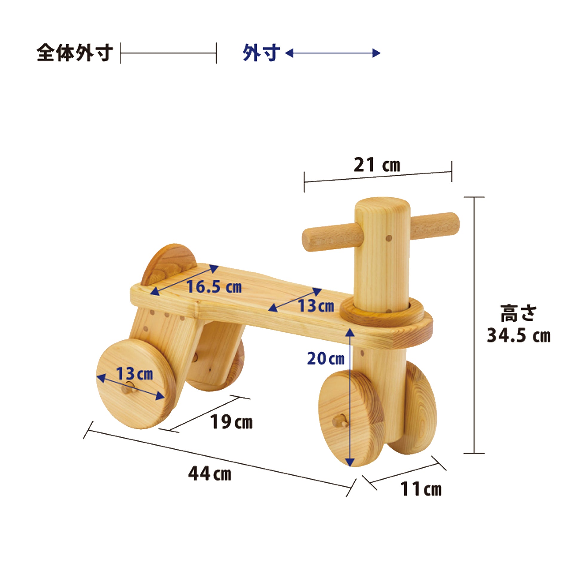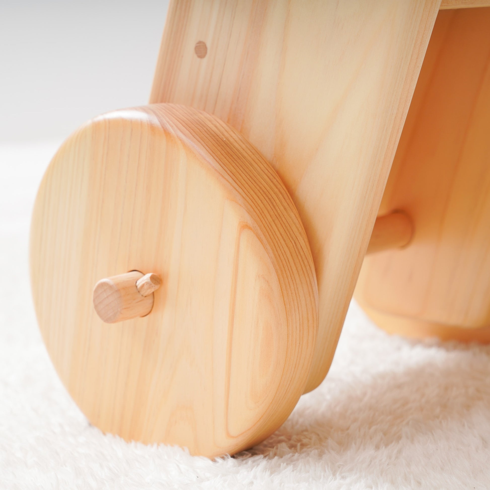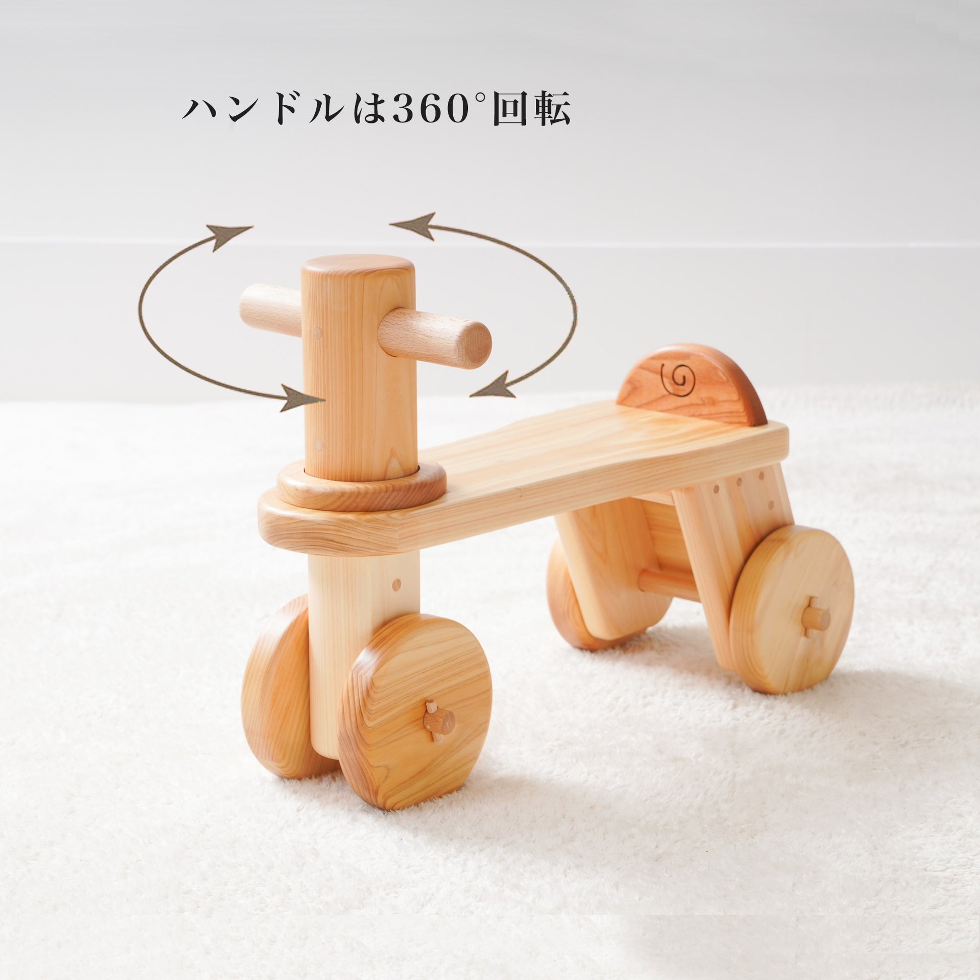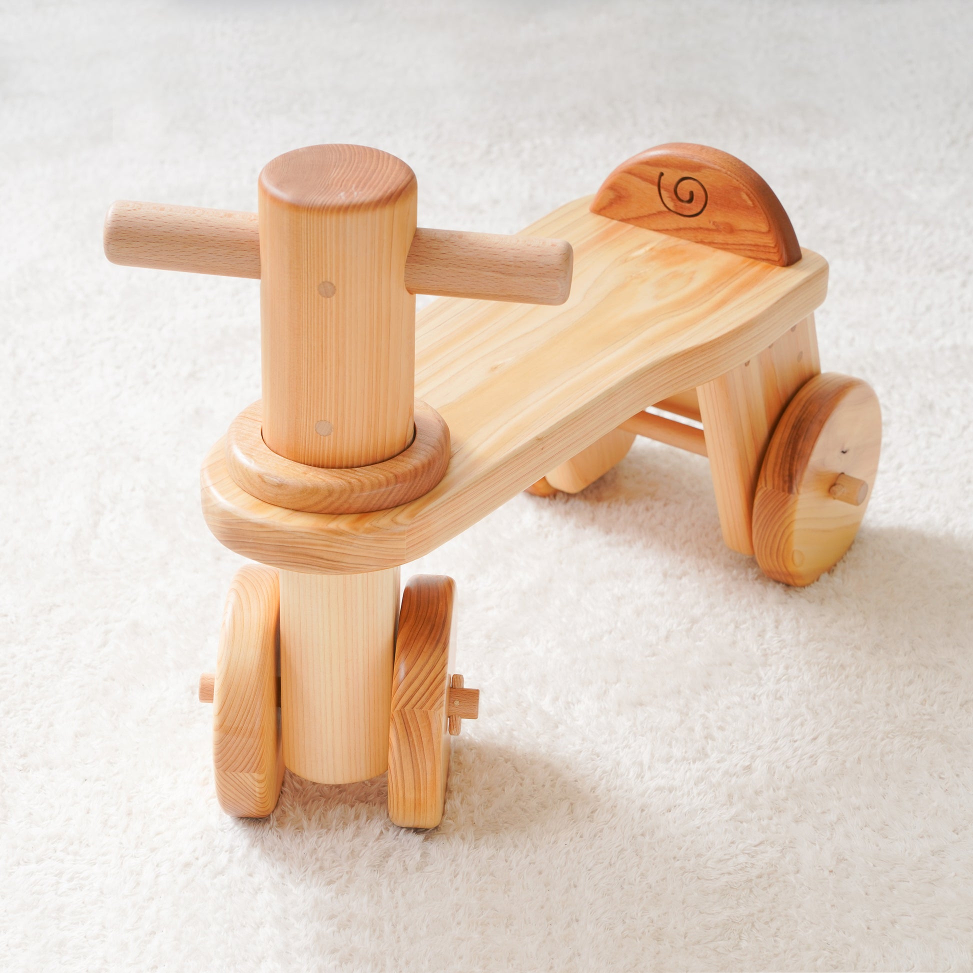 1歳から乗って遊べる乗り車です。子どもたちは車が大好き。バランス感覚、運動機能の発達、足先の力をしっかりと遊びを通じて鍛えてくれる、乗り車です。