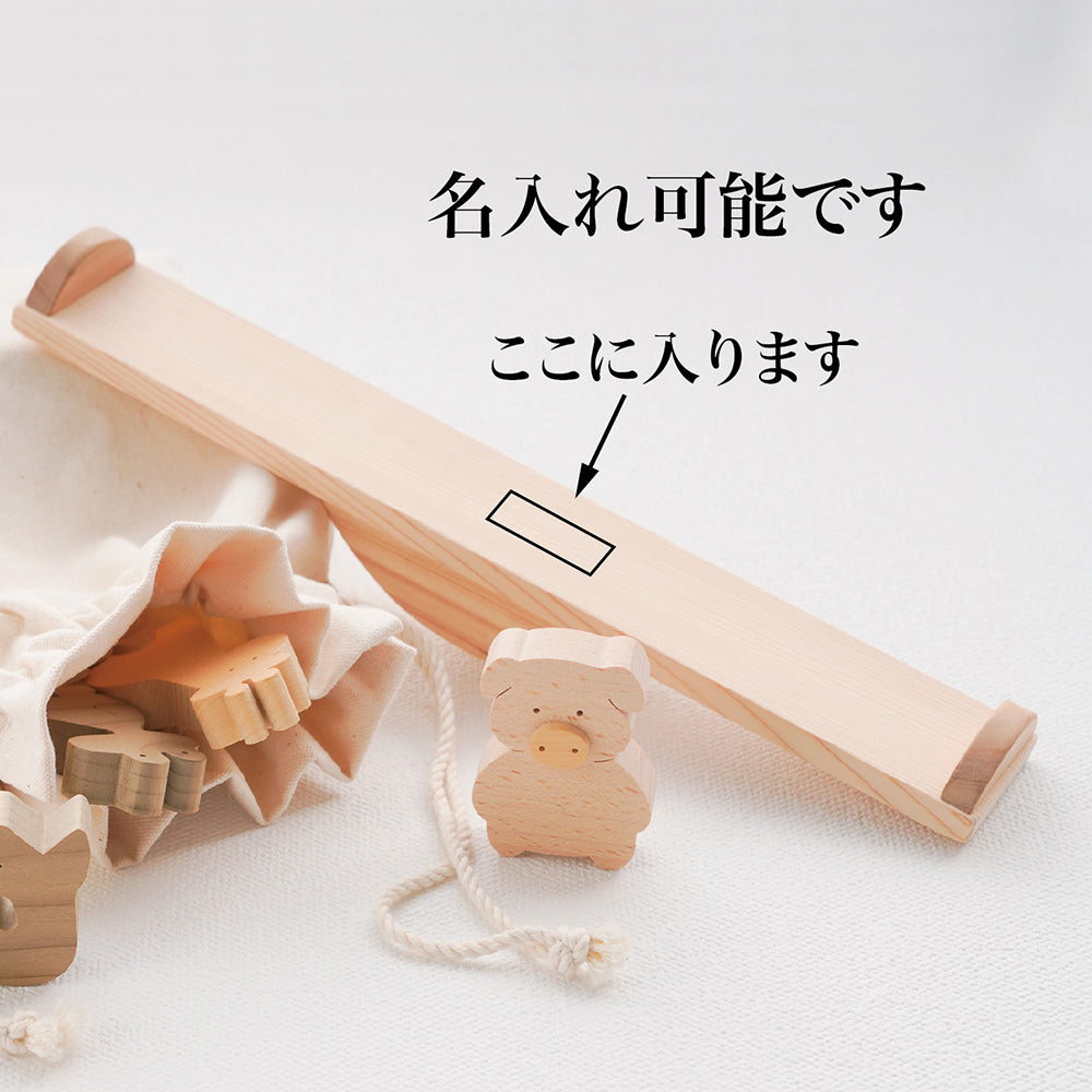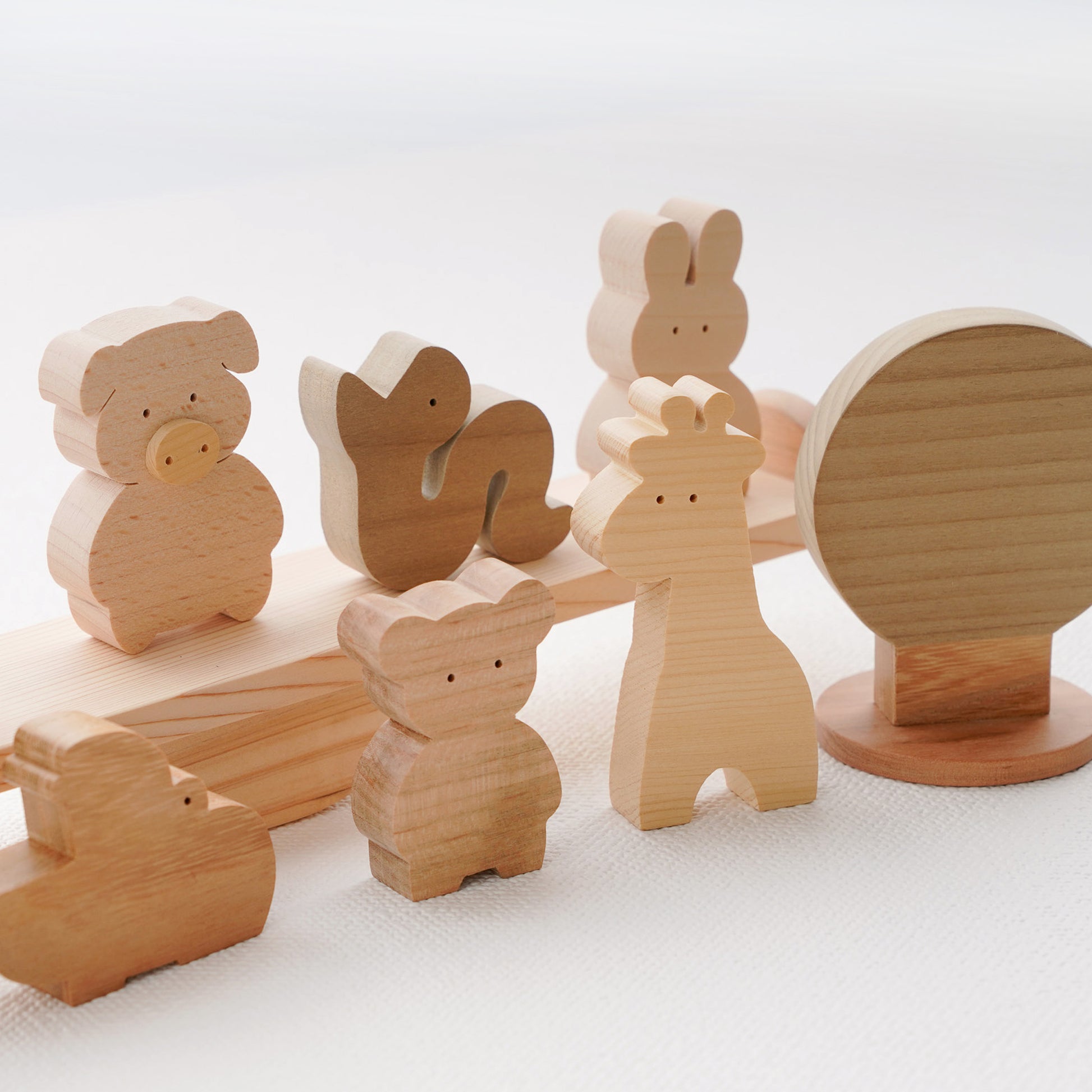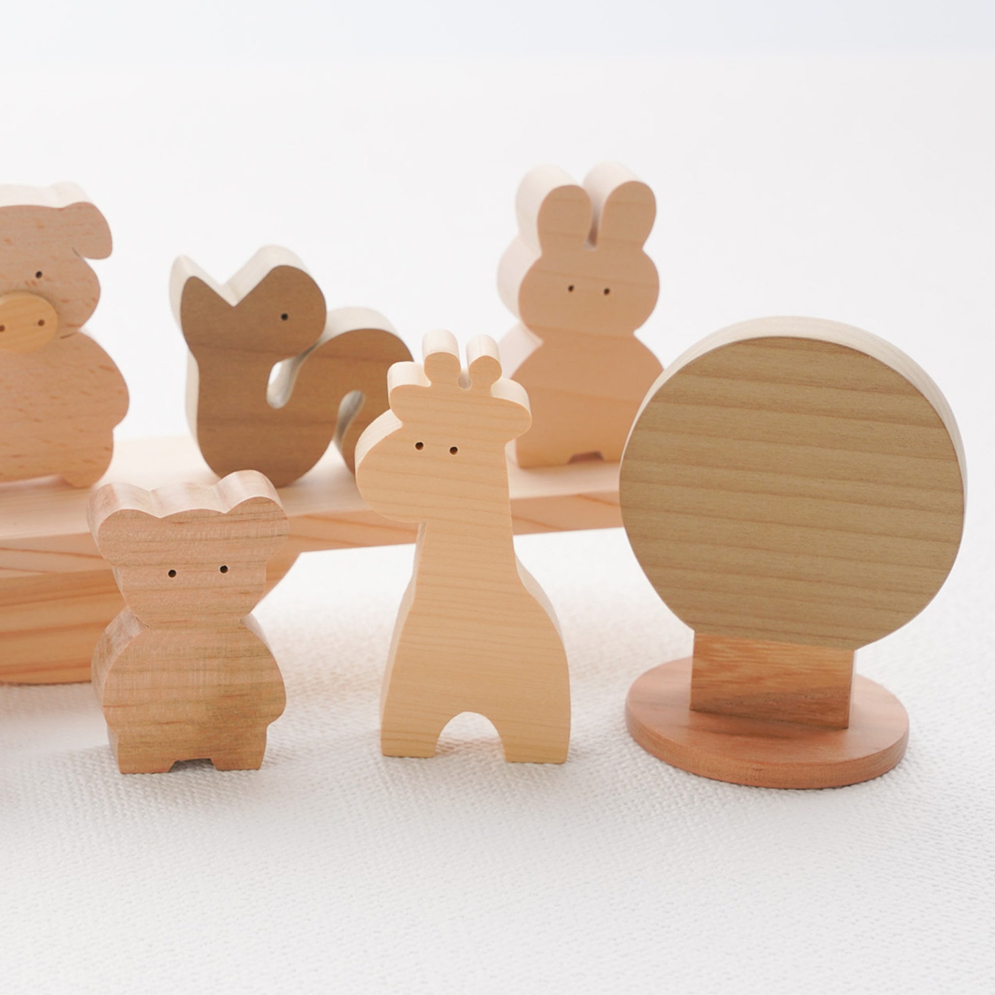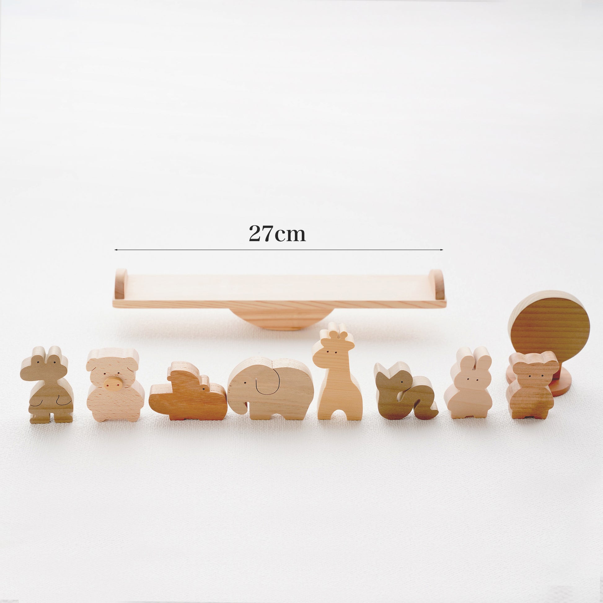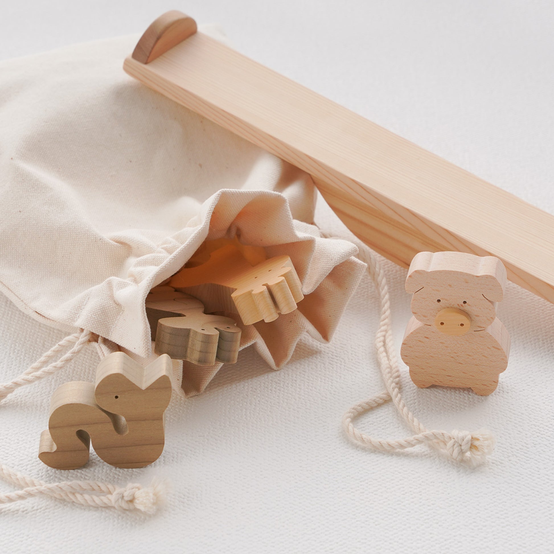 グッドトイ賞受賞の木のおもちゃ。動物たちがバランスを取りながらあっちに傾き、こっちに傾き。動物たちを指で移動させて全員を乗せてみよう。1歳のお誕生日にお勧めの木のおもちゃ