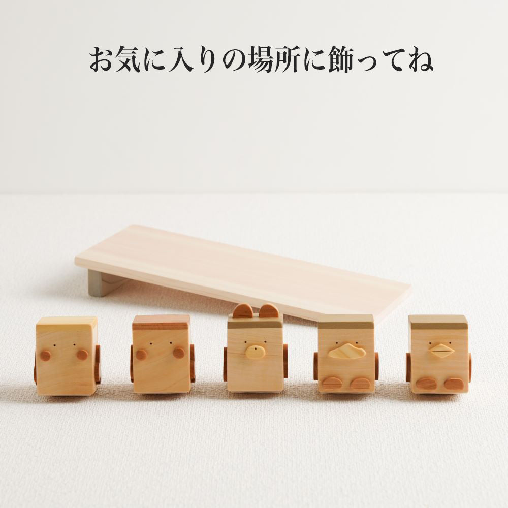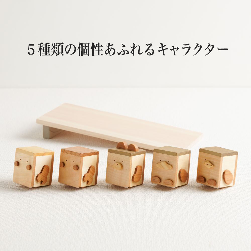 遊ばないときは、棚や窓辺にちょこんと置いてインテリアとしても楽しめます。自然素材の温かみと、ユニークなキャラクターたちの表情が、お部屋をやさしく彩ります。