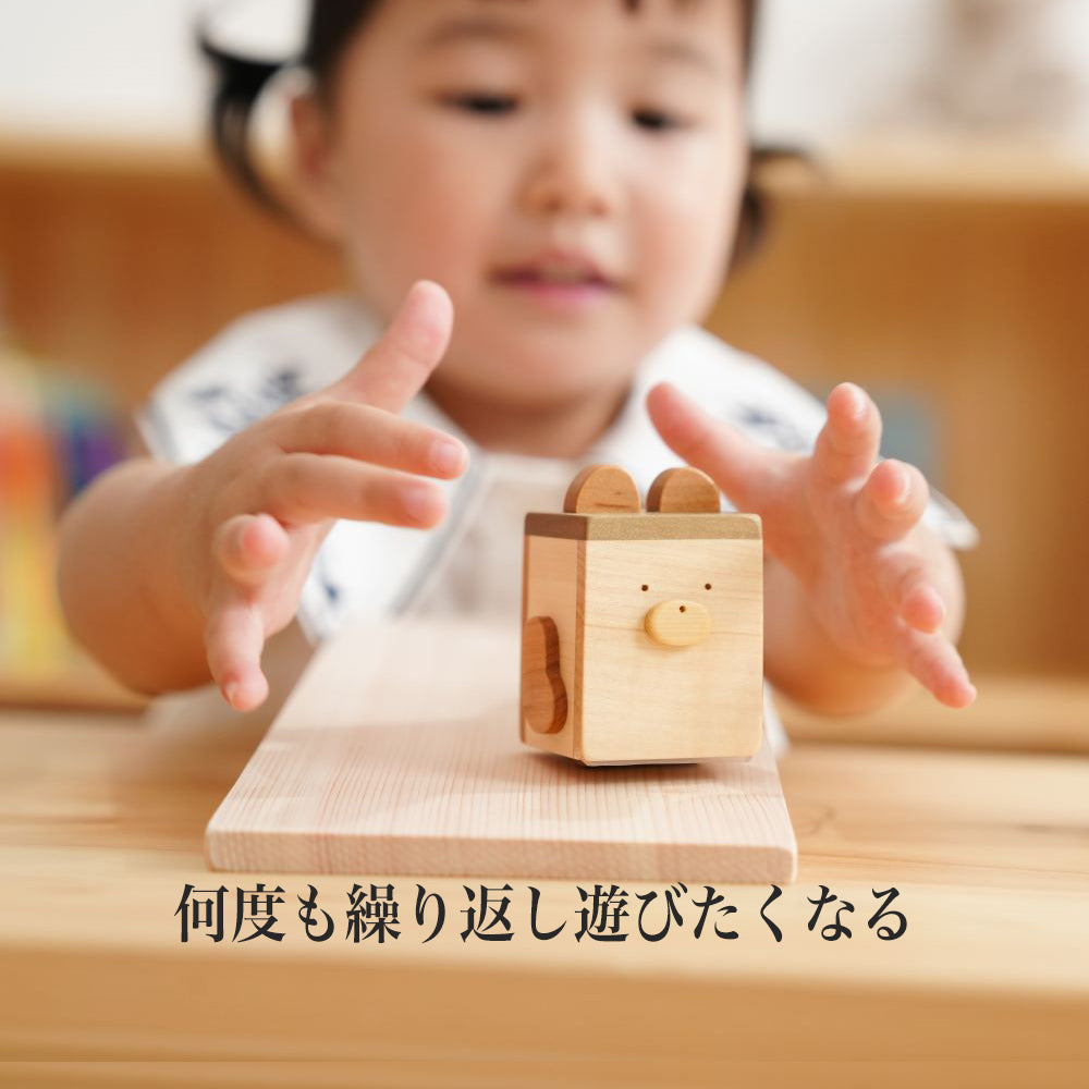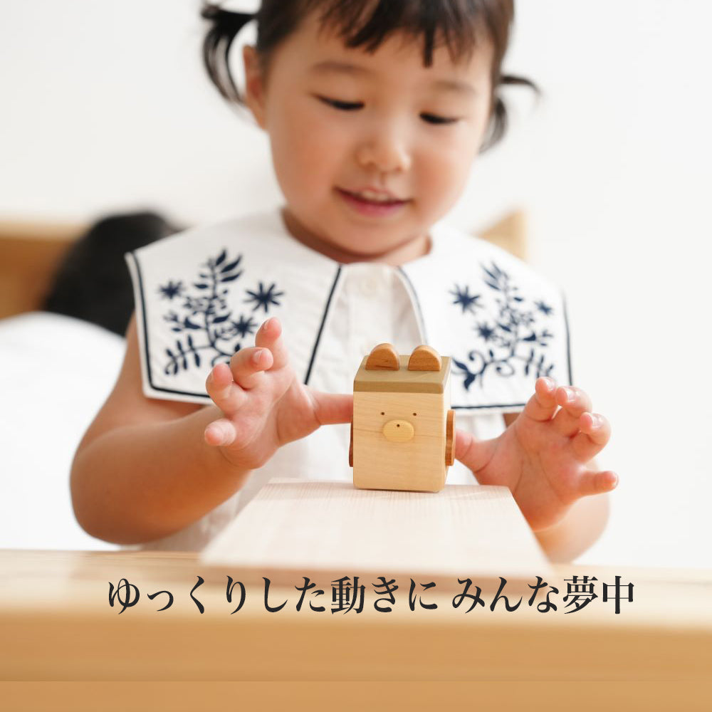 シンプルな構造ながらも、キャラクターが坂を降りるたびに、子どもたちは「もう一回!」と繰り返し夢中になります。