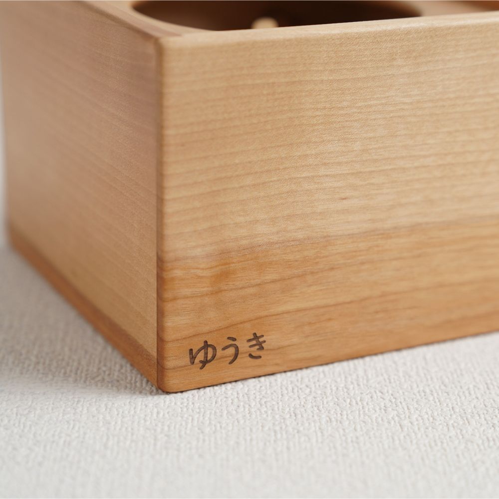 湿気の多い時期には膨らみ、乾燥すると収縮します。木の乾燥は十分に行っているのですが、稀に木のおもちゃの箱に亀裂が入ったり、家具の引出しが少し抜けにくかったりといった動きが見られる場合があります。