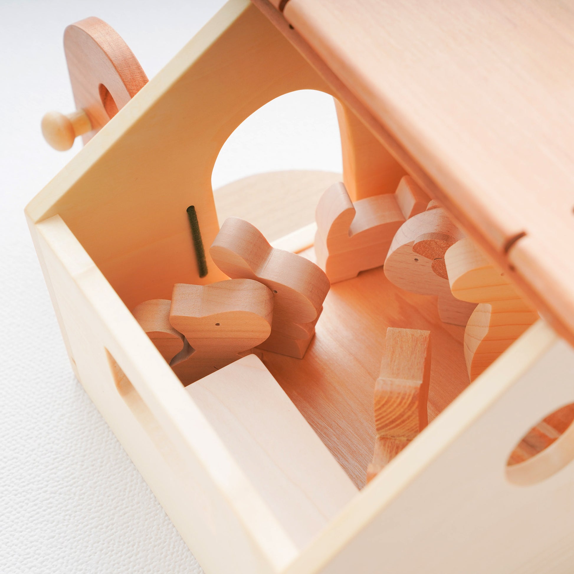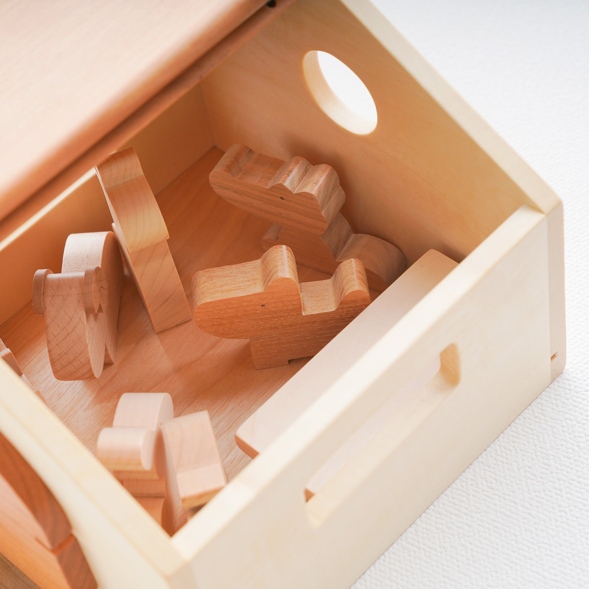 湿気の多い時期には膨らみ、乾燥すると収縮します。木の乾燥は十分に行っているのですが、稀に木のおもちゃの箱に亀裂が入ったり、家具の引出しが少し抜けにくかったりといった動きが見られる場合があります。