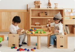 なかよしライブラリーは、お誕生から小学校へ上がるまでの子供たちを対象にした木のおもちゃと子供家具の専門店です。創業者は保育士でもあり、一貫して子供たちに安心安全な木のおもちゃと子供家具を創り続けてきました。日本の木材を使い、自社で製造。また、お客様や保育園・幼稚園などに直接販売させていただくことで、使う子供たちや保護者の方々からの意見を直接聞き、それらを製品づくりに活かしています。