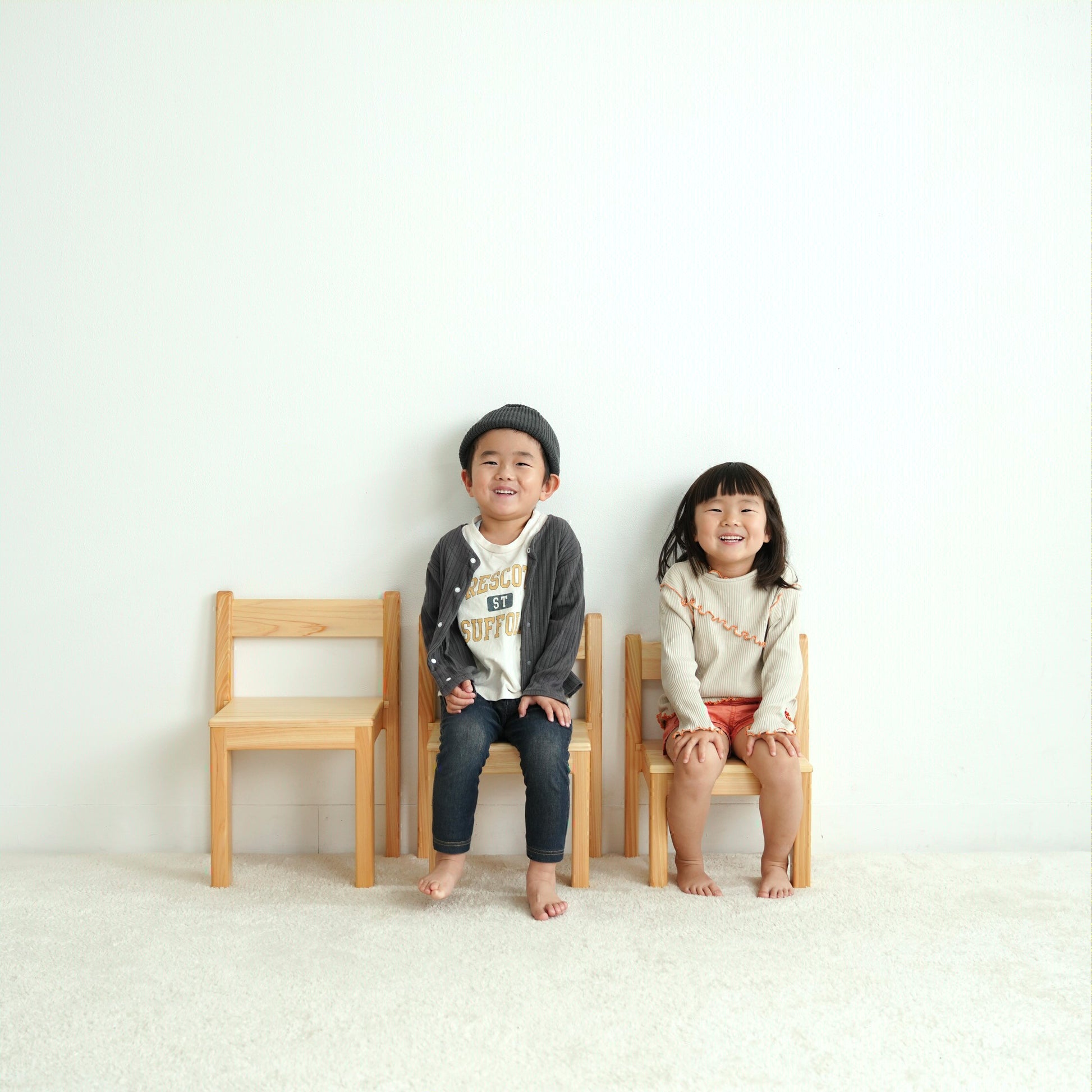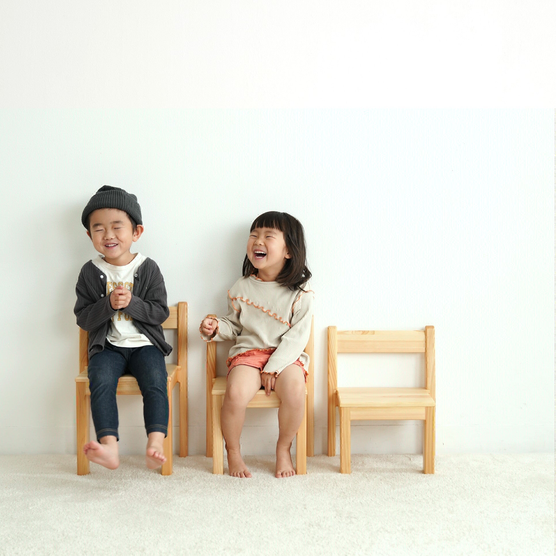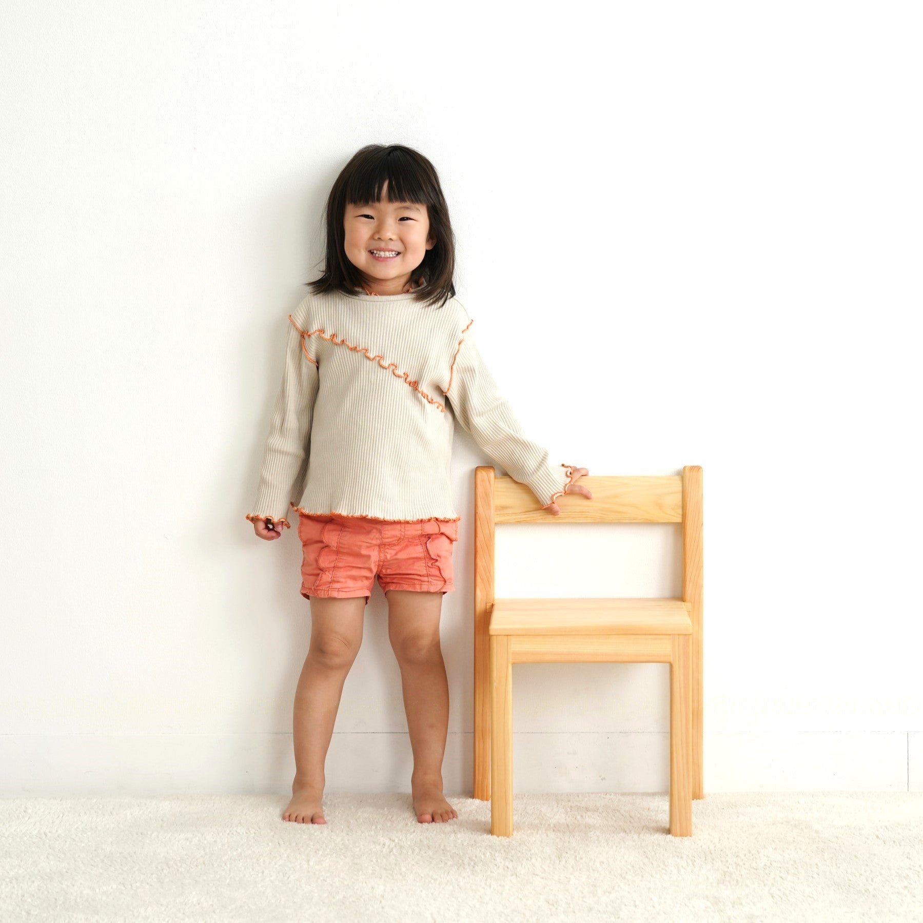 ご家庭ではワンサイズ大きめをと考えがちですが、その時の年齢に応じて高さを決めていただくことをおすすめしております。木の椅子はきっとお部屋になじんできます。家族の一員として大切にご使用ください。