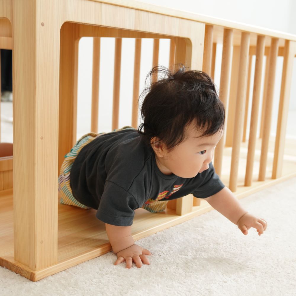 対象年齢は8か月~3歳頃。保育園や子ども園であれば年少クラスに配置することをお勧めいたします。あかちゃんのハイハイが始まる生後8か月頃からトンネル遊具でのお部屋環境を整えてあげてください。