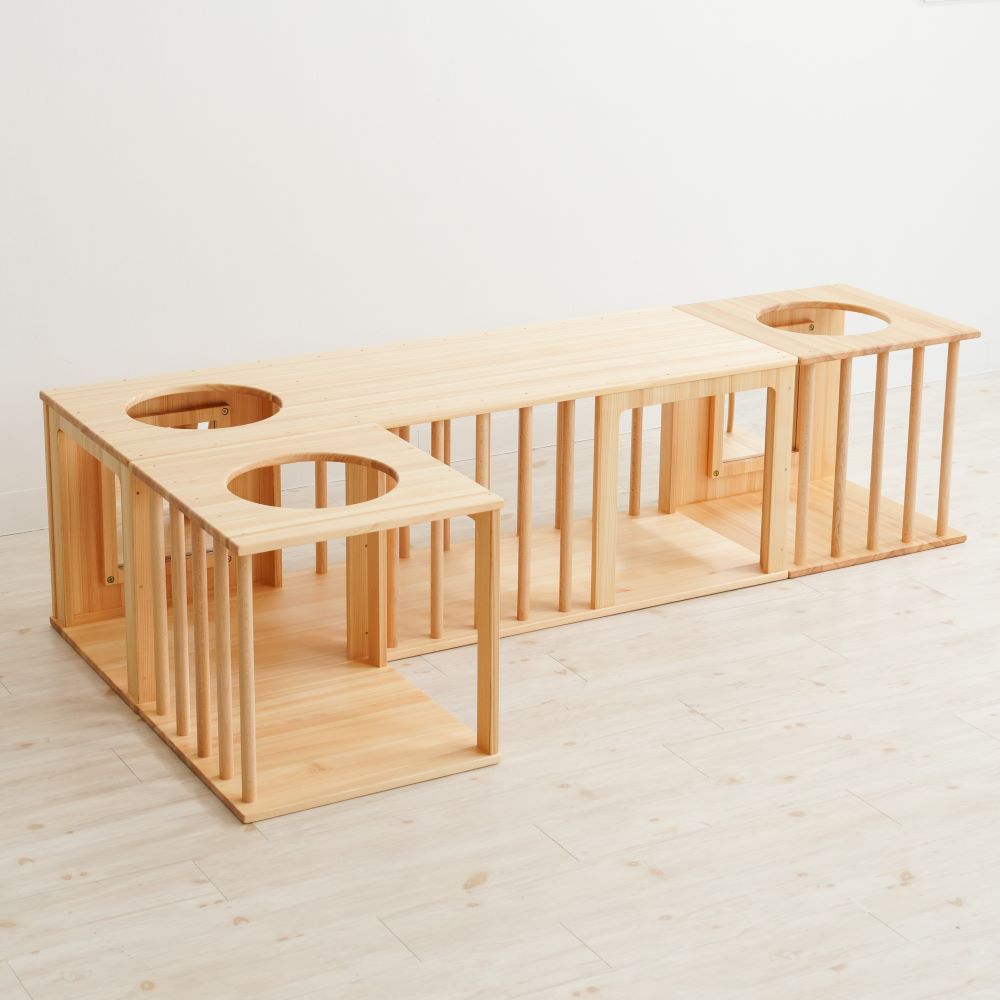 パーツごとに追加注文していただくことができます。まずは3点セットからお試しいただき、徐々に追加しながら迷路のように、また子どもたちの想像力に合わせて自由に組み合わせを楽しんでください。
