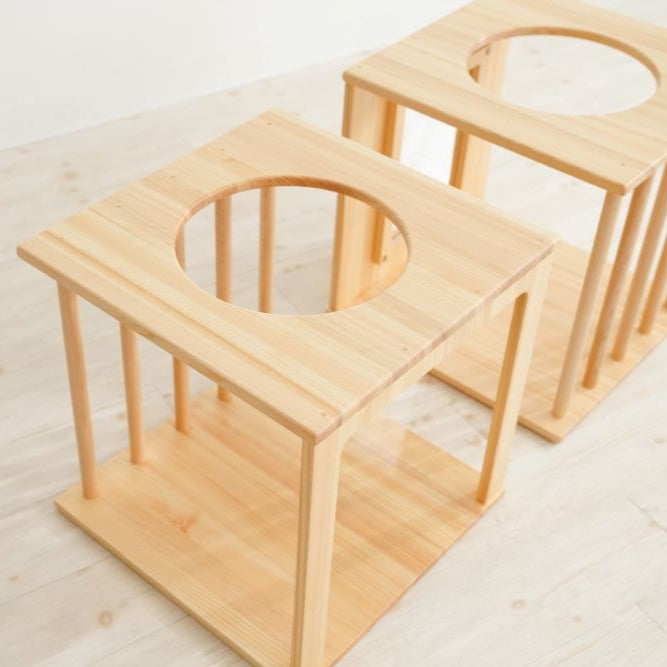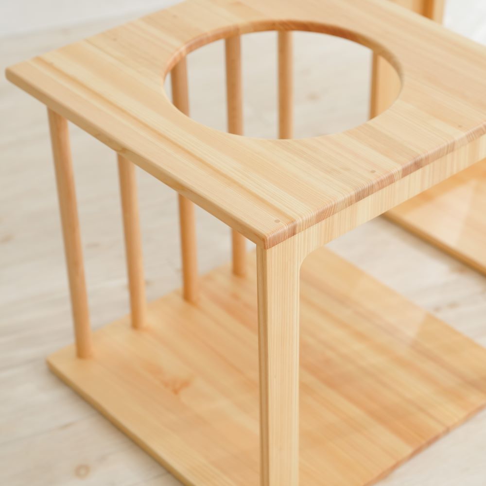 国産のヒノキを使って製作しています。傷や凹みもつきますが、子どもたちの思い出と共にあめ色に風合い良く経年変化していきます。