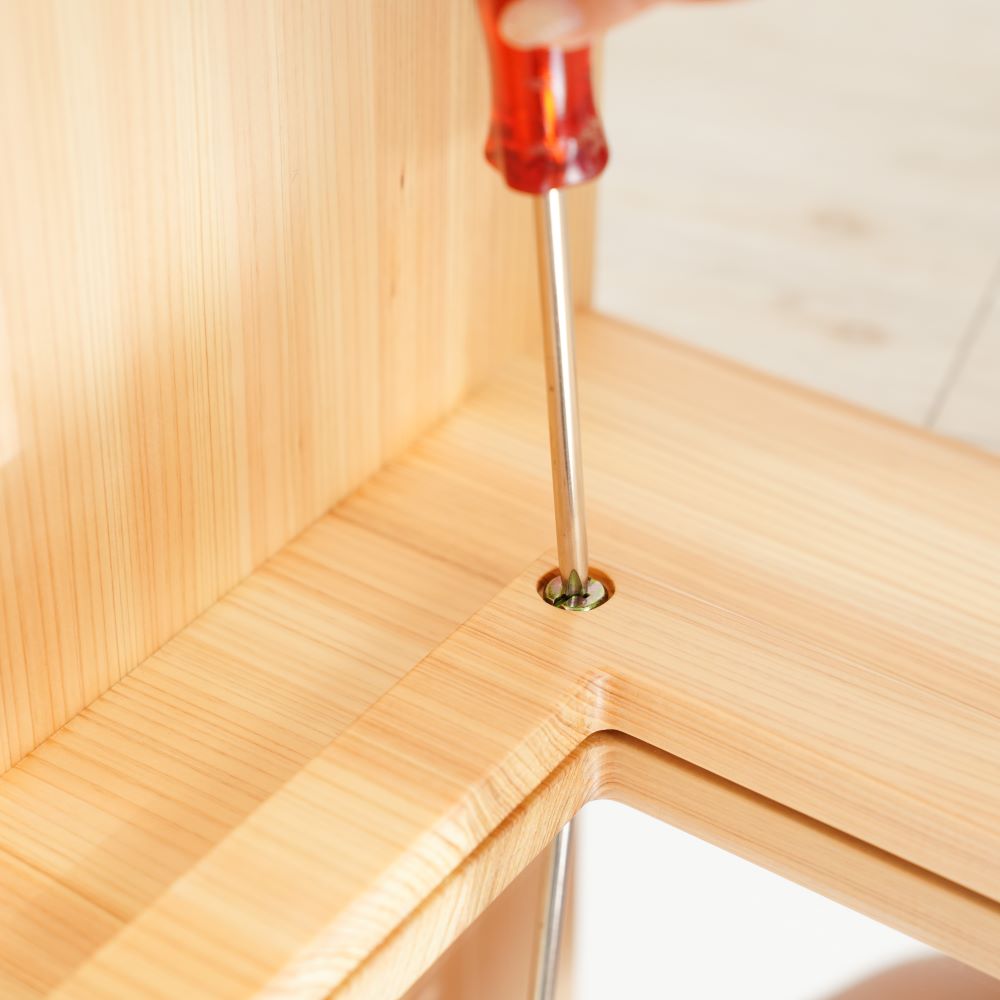 湿気の多い時期には膨らみ、乾燥すると収縮します。木の乾燥は十分に行っているのですが、稀に木のおもちゃの箱に亀裂が入ったり、家具の引出しが少し抜けにくかったりといった動きが見られる場合があります。
